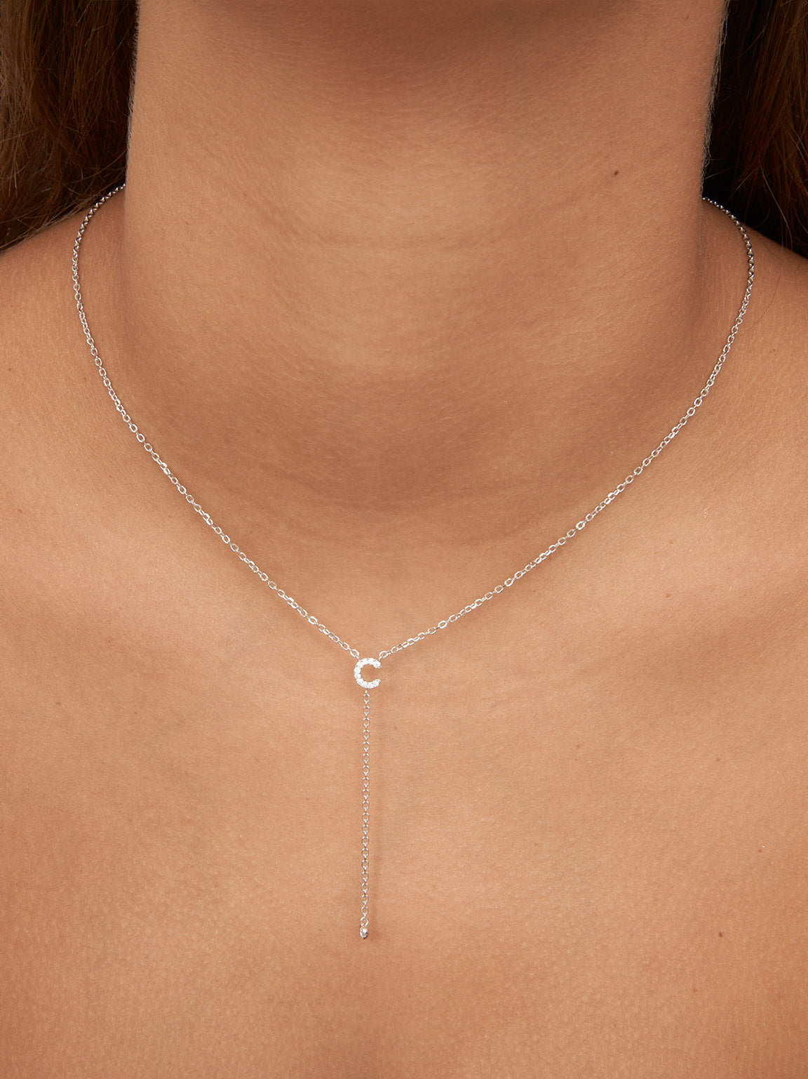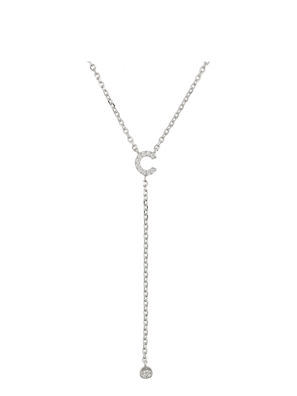 Collar colgante, Plata 925 bañada en rodio, Zirconia cúbica artificial, Claro, Círculo, Letra, Artificial, Color plateado, longitud del colgante: 6.0 cm, ancho colgante: 0.6 cm, 2.95 g