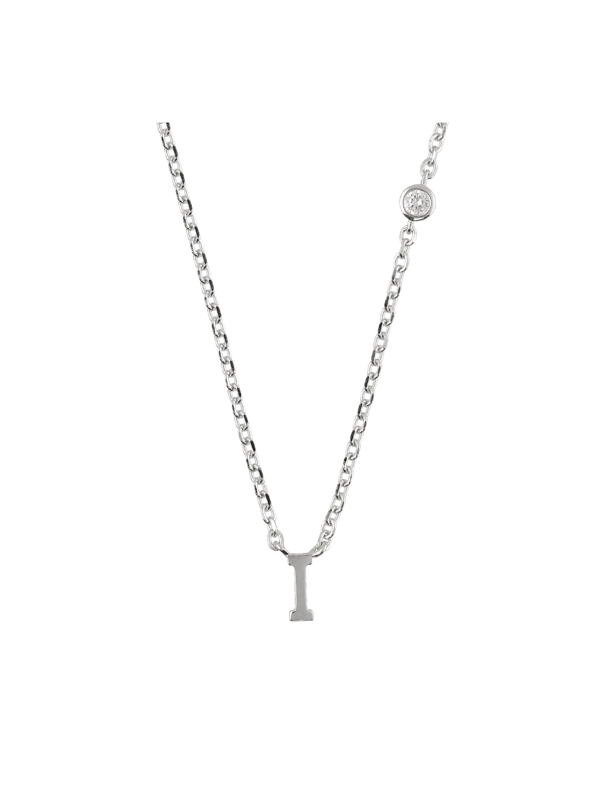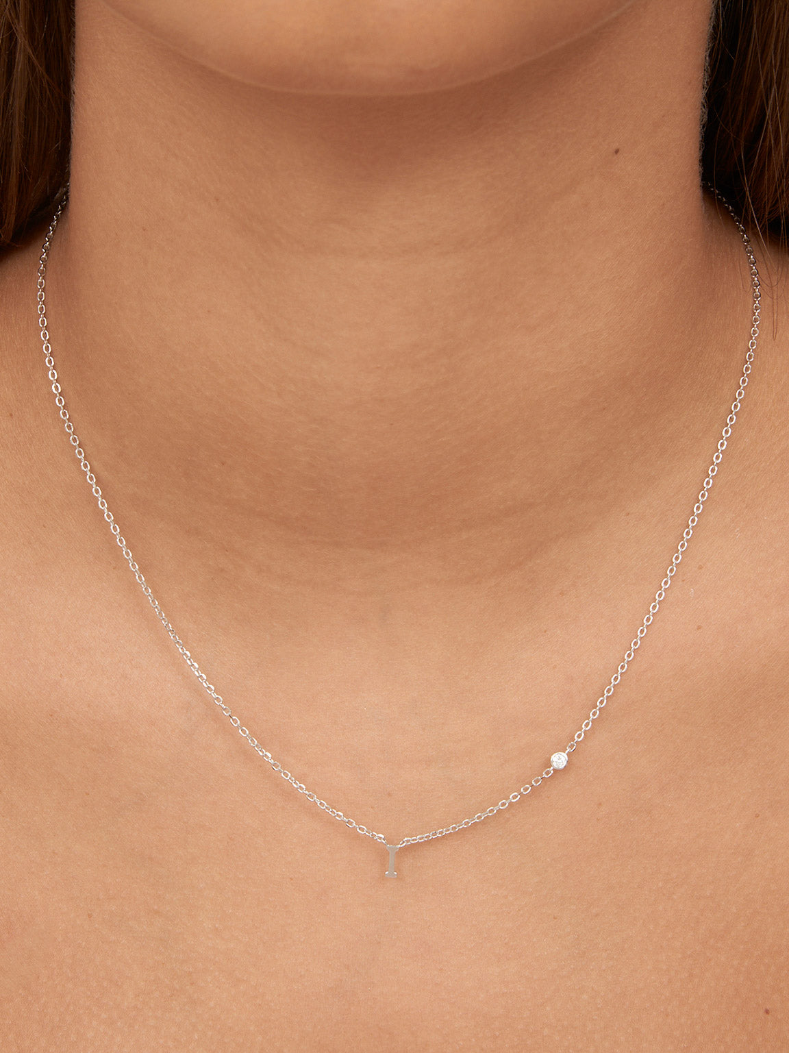 Collar colgante, Plata 925 bañada en rodio, Zirconia cúbica artificial, Claro, Círculo, Letra, Artificial, Color plateado, longitud del colgante: 0.7 cm, ancho colgante: 0.3 cm, 2.74 g