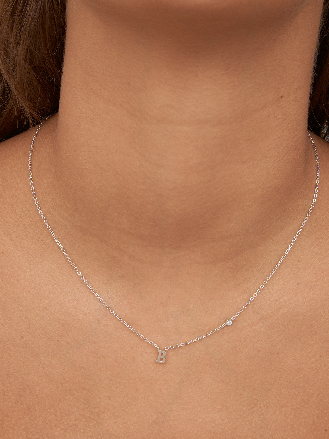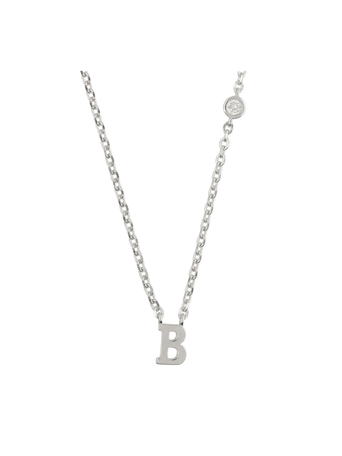 Collar colgante, Plata 925 bañada en rodio, Zirconia cúbica artificial, Claro, Círculo, Letra, Artificial, Color plateado, longitud del colgante: 0.7 cm, ancho colgante: 0.4 cm, 2.81 g