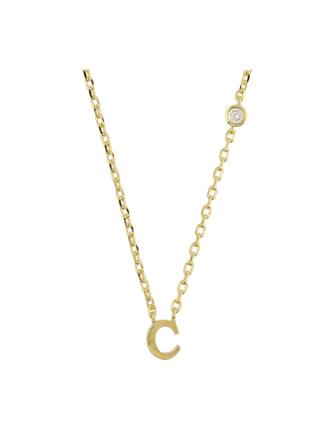Collar colgante, Bañado en oro, Zirconia cúbica artificial, Claro, Círculo, Letra, Artificial, Color dorado, longitud del colgante: 0.7 cm, ancho colgante: 0.5 cm, 2.56 g