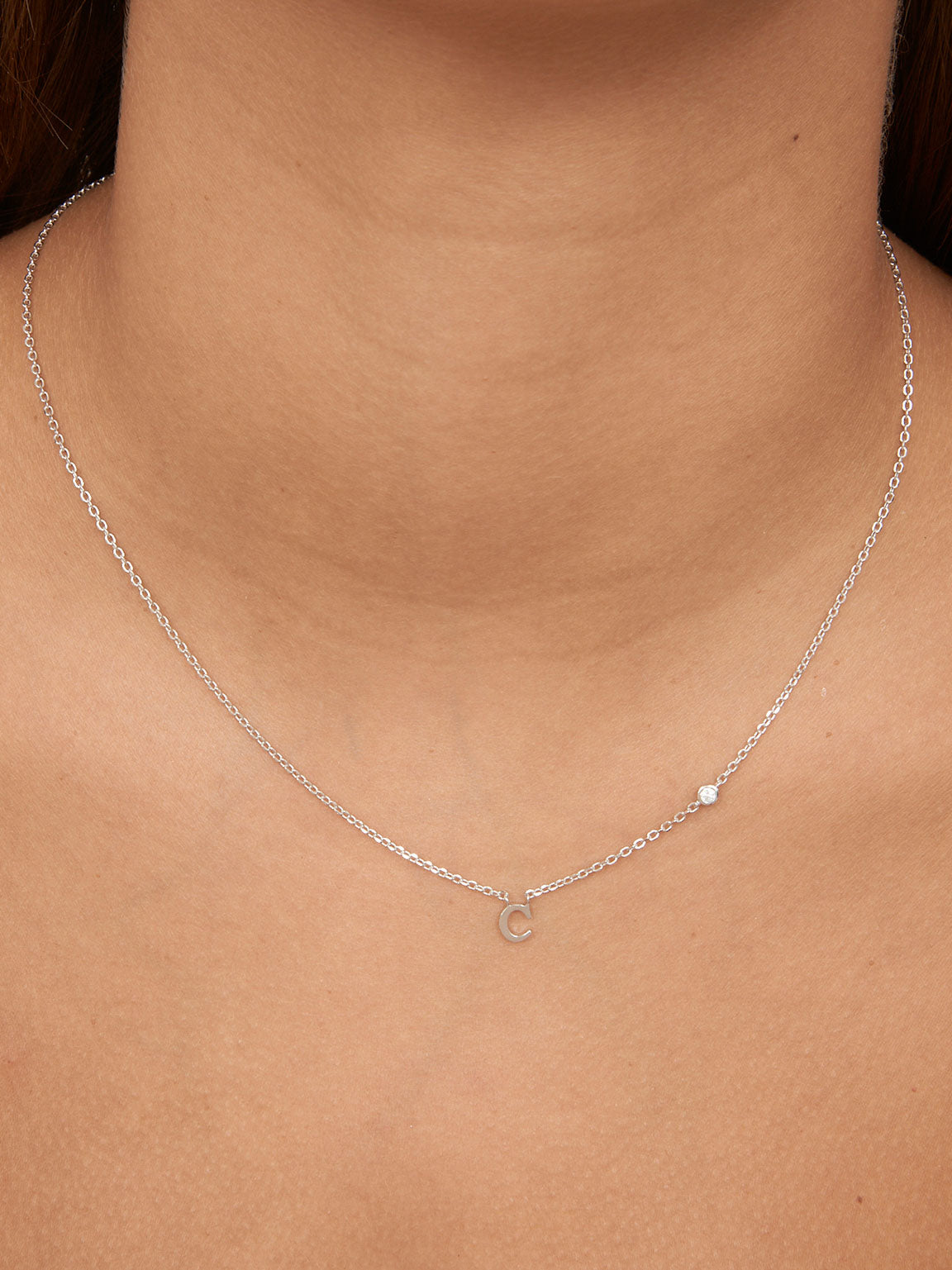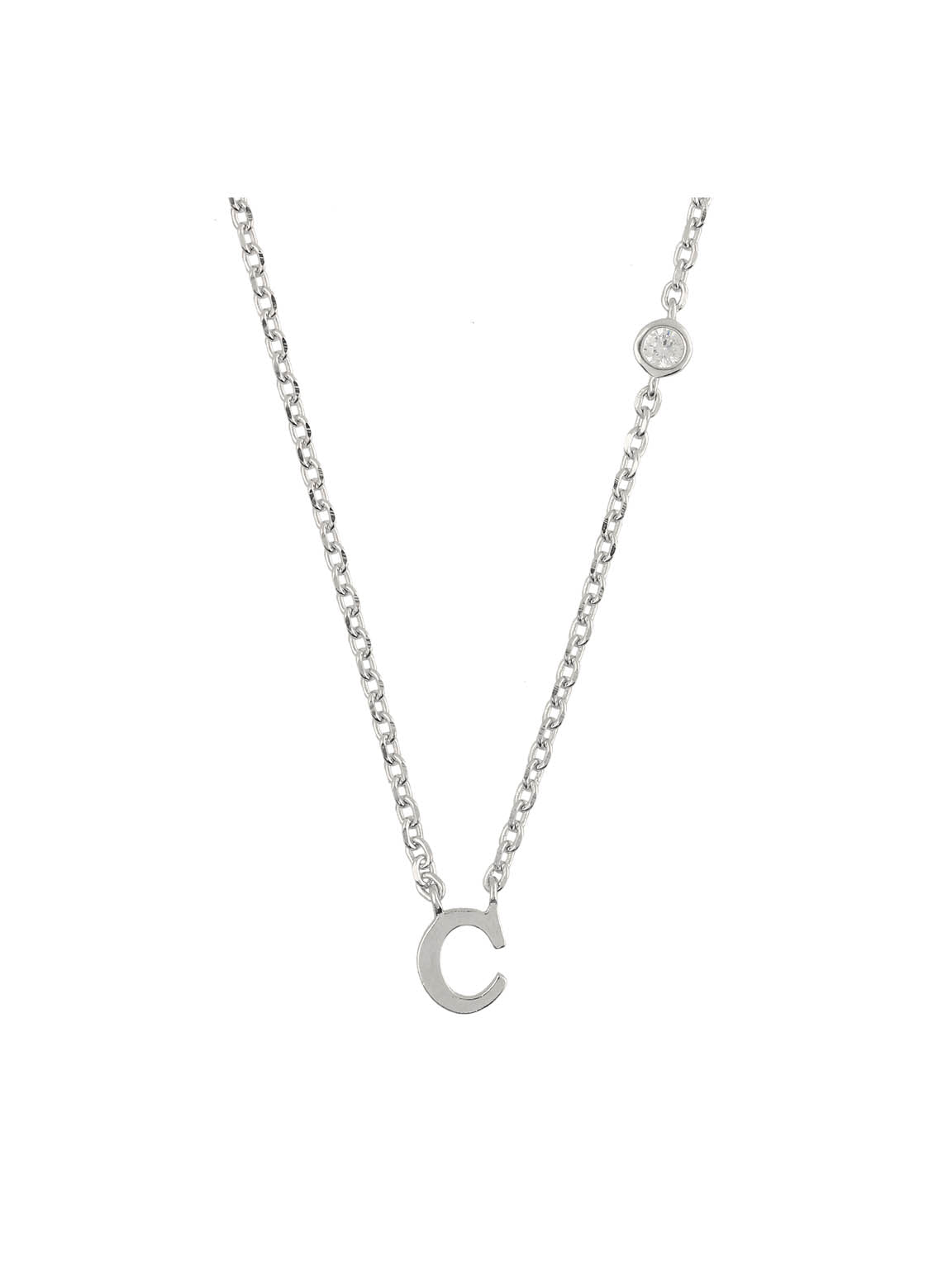 Collar colgante, Plata 925 bañada en rodio, Zirconia cúbica artificial, Claro, Círculo, Letra, Artificial, Color plateado, longitud del colgante: 0.7 cm, ancho colgante: 0.5 cm, 2.78 g