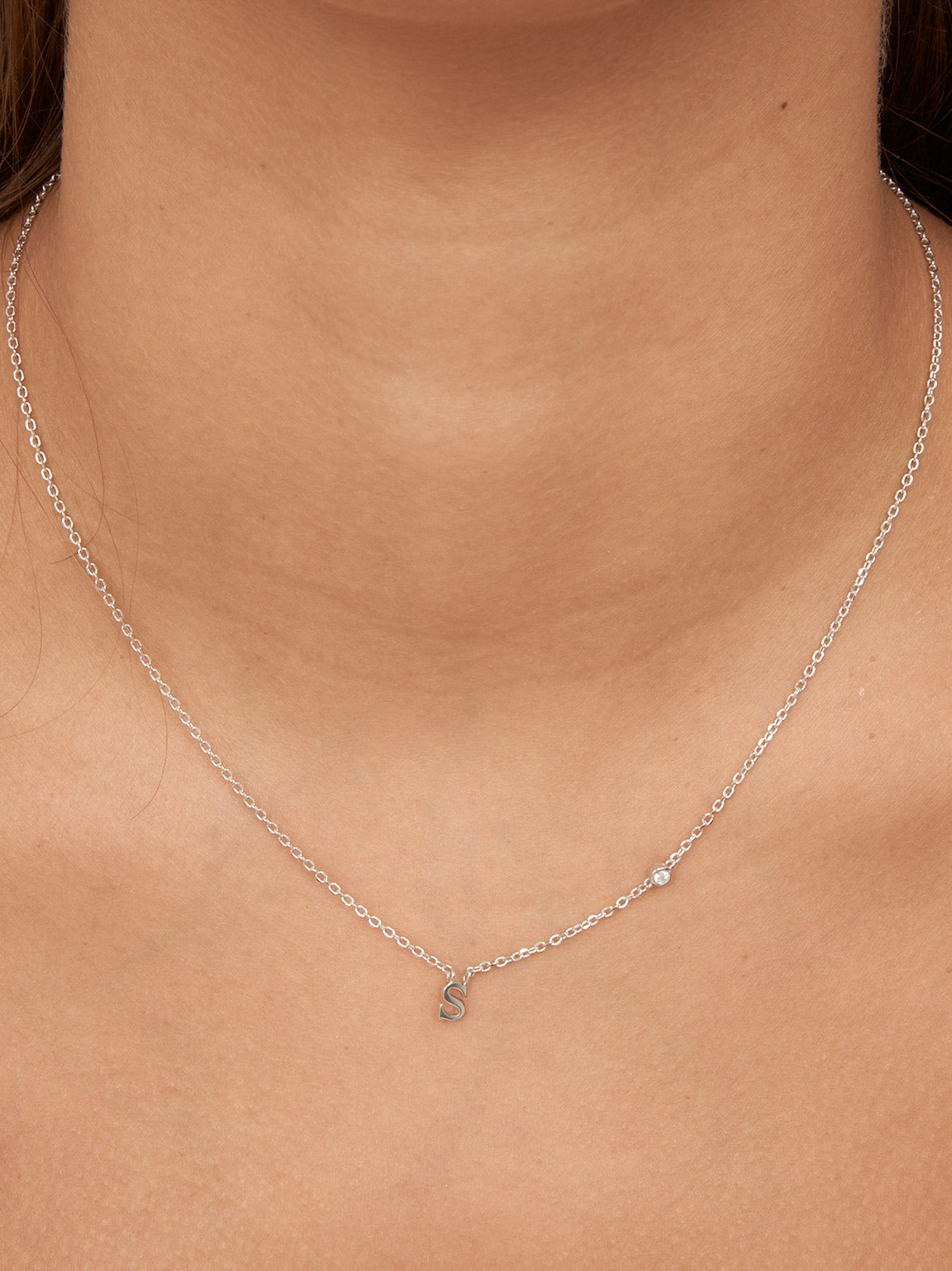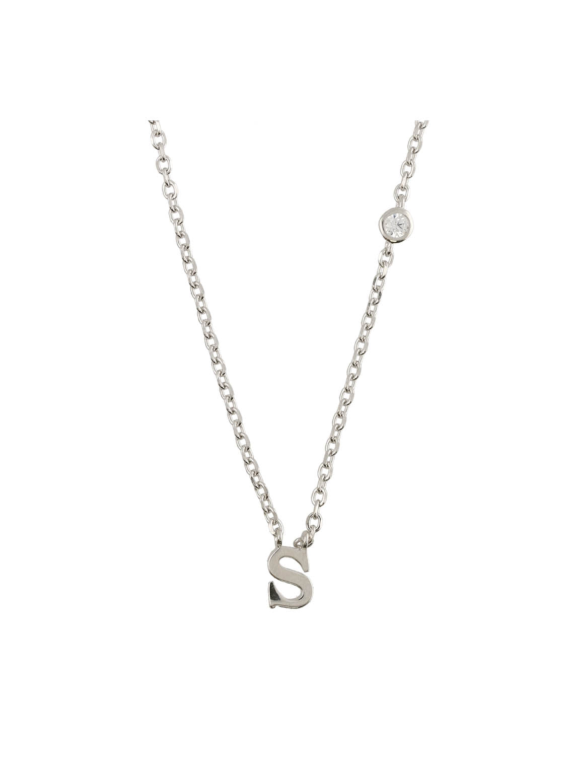 Collar colgante, Plata 925 bañada en rodio, Zirconia cúbica artificial, Claro, Círculo, Letra, Artificial, Color plateado, longitud del colgante: 0.7 cm, ancho colgante: 0.5 cm, 2.77 g