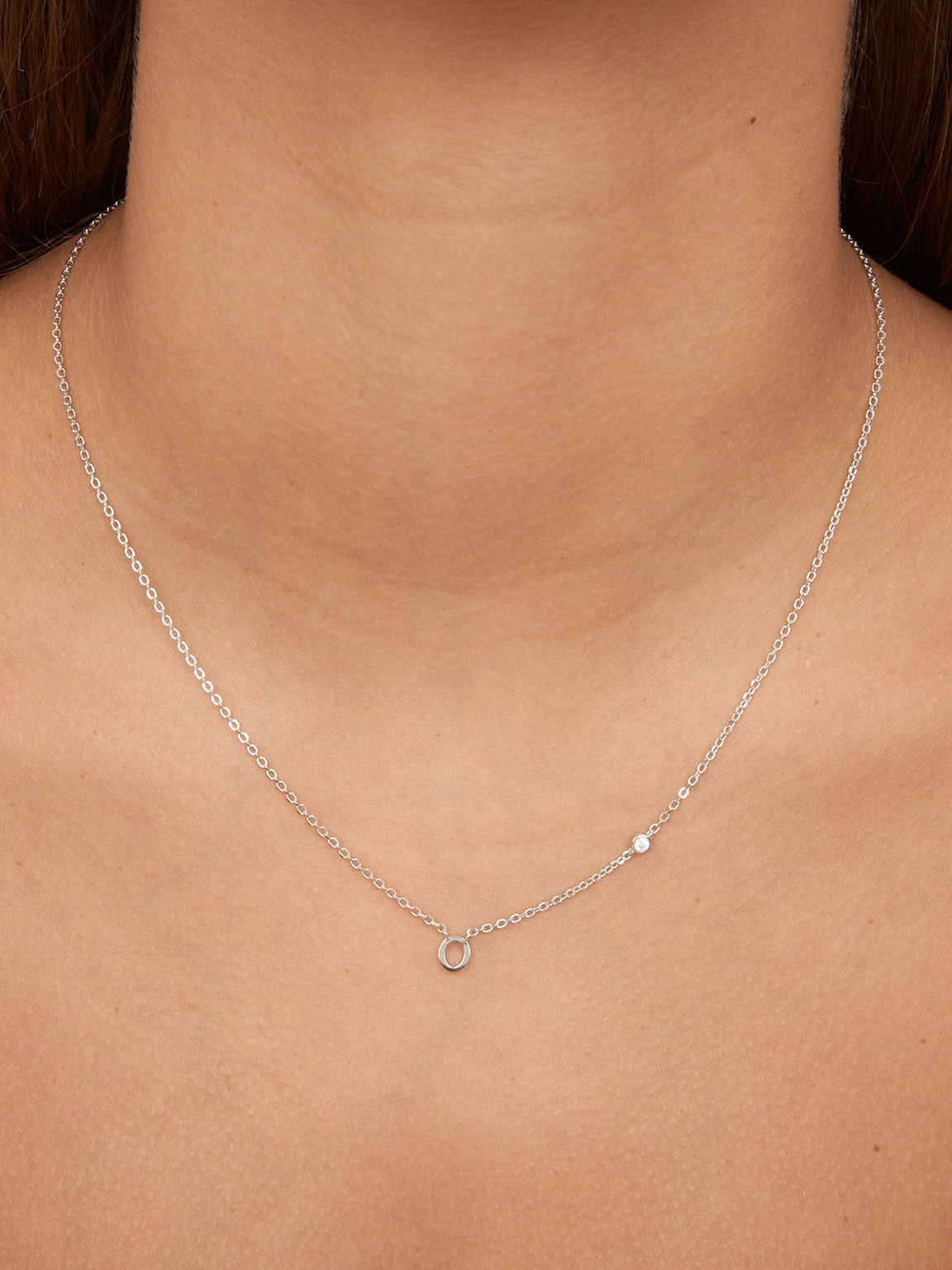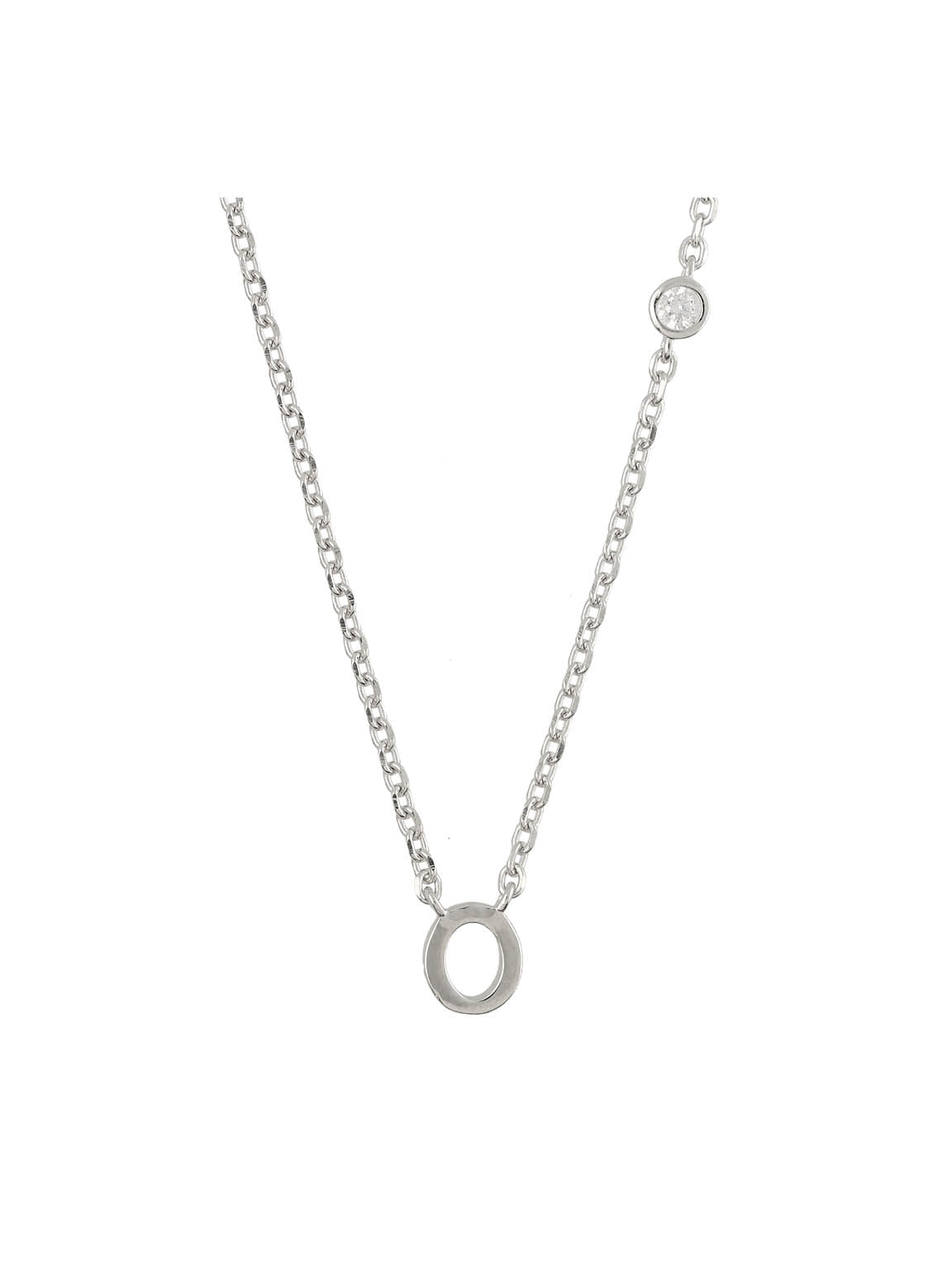 Collar colgante, Plata 925 bañada en rodio, Zirconia cúbica artificial, Claro, Círculo, Letra, Artificial, Color plateado, longitud del colgante: 0.7 cm, ancho colgante: 0.6 cm, 2.84 g
