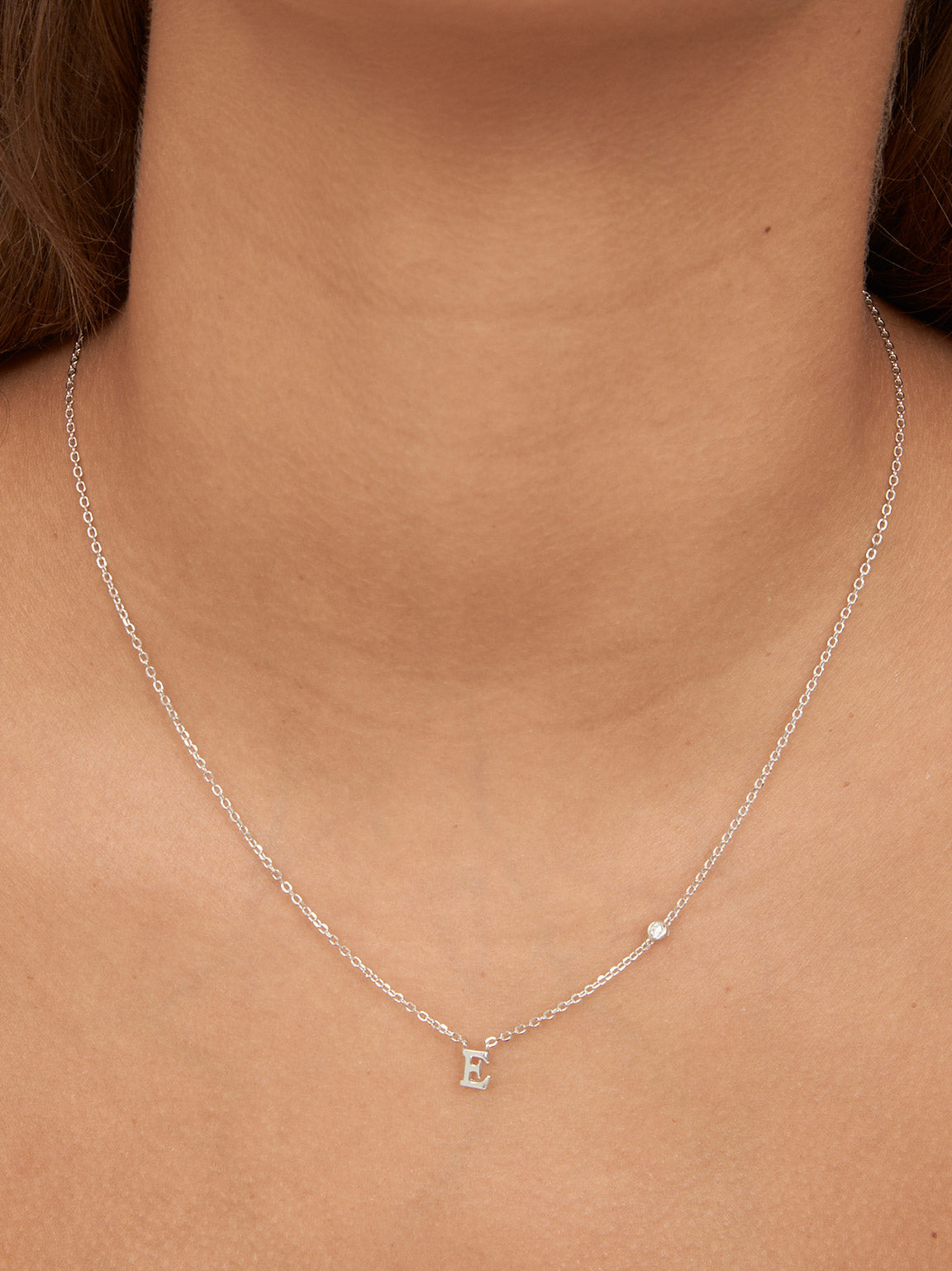 Collar colgante, Plata 925 bañada en rodio, Zirconia cúbica artificial, Claro, Círculo, Letra, Artificial, Color plateado, longitud del colgante: 0.7 cm, ancho colgante: 0.5 cm, 2.80 g