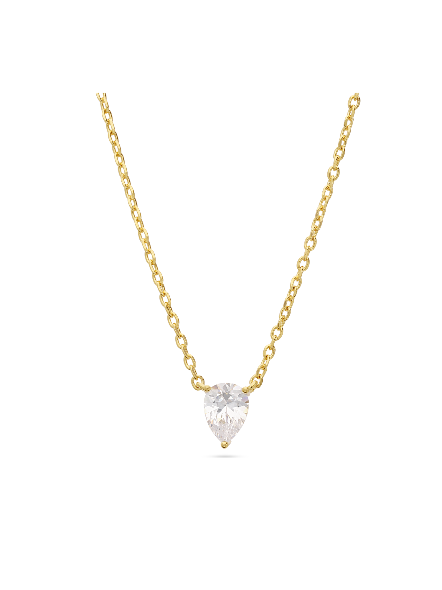 Collar colgante, Bañado en oro, Zirconia cúbica artificial, Claro, Lágrima, Artificial, Color dorado, longitud del colgante: 0.7 cm, ancho colgante: 0.6 cm, 2.90 g