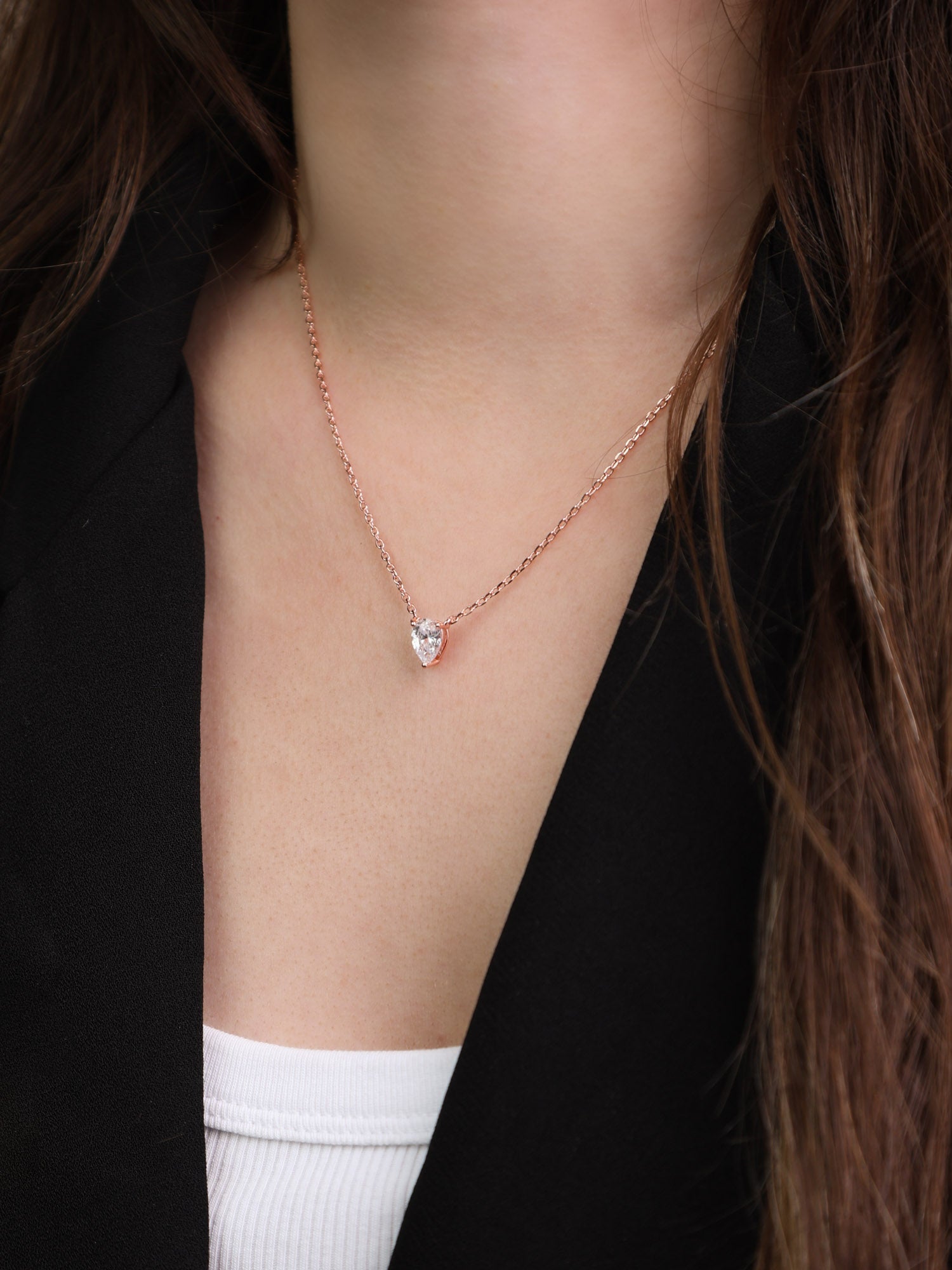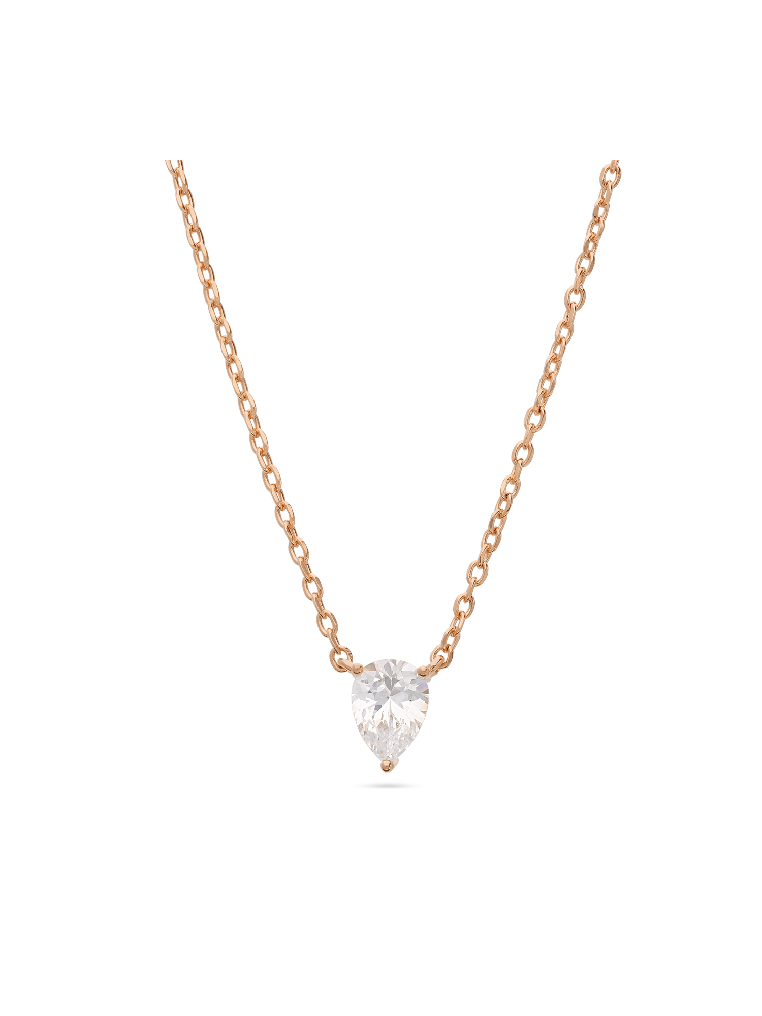Collar colgante, Bañado en oro rosa, Zirconia cúbica artificial, Claro, Lágrima, Artificial, Oro rosa, 3.30 g