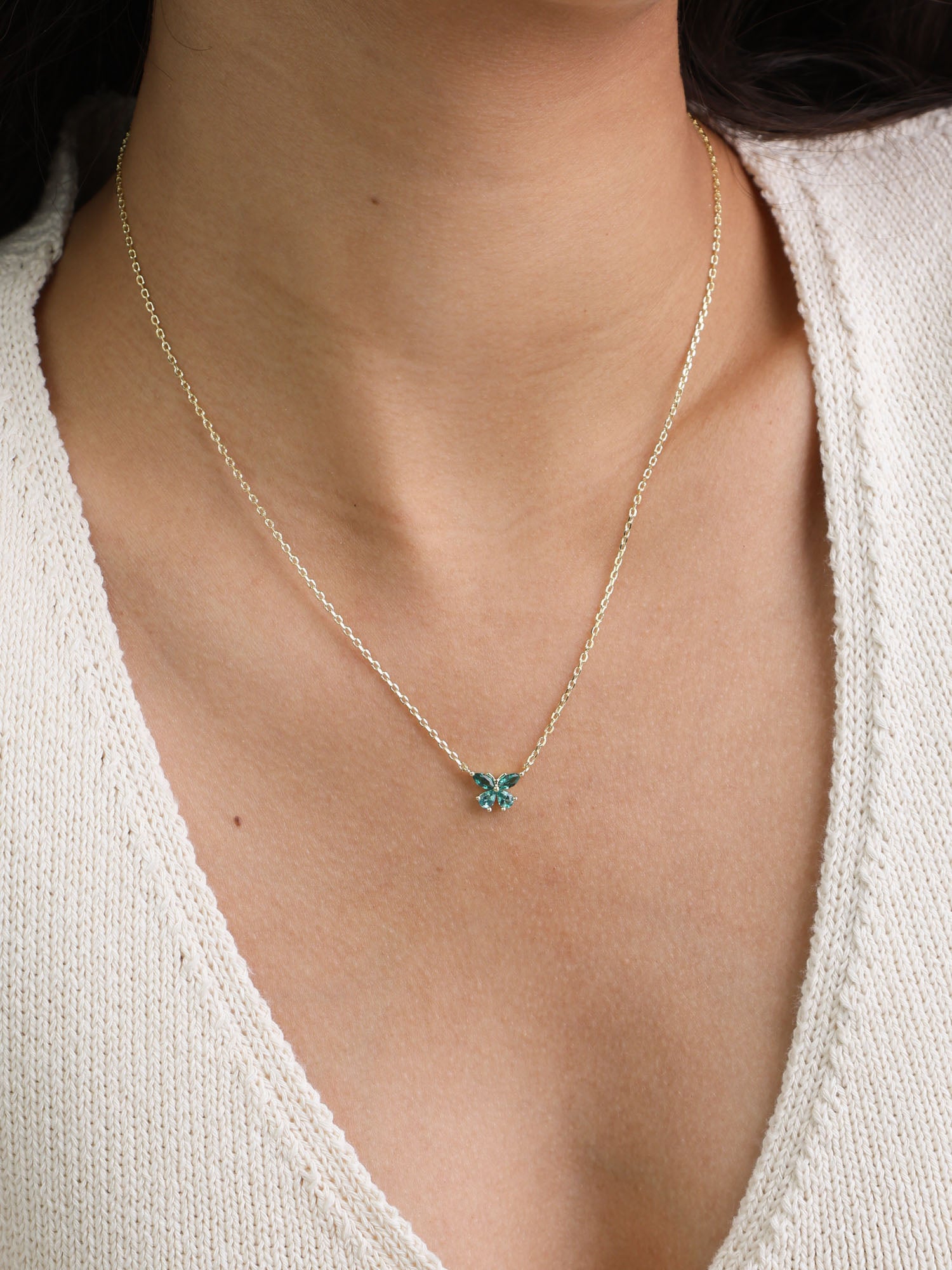 Collar colgante, Bañado en oro, Zirconia cúbica artificial, Turquesa, Mariposa, Artificial, Color dorado, ancho colgante: 1.1 cm, longitud del colgante: 0.8 cm, 2.67 g