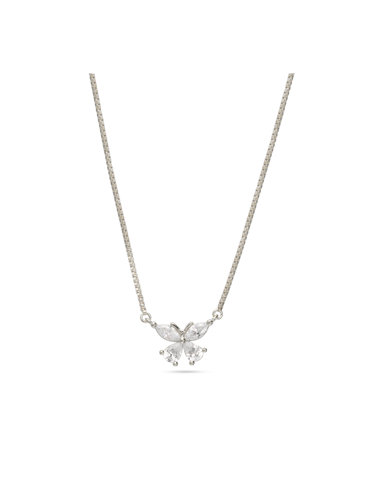 Collar colgante, Plata 925 bañada en rodio, Zirconia cúbica artificial, Claro, Mariposa, Artificial, Color plateado, longitud del colgante: 0.8 cm, ancho colgante: 1.1 cm, 3.02 g