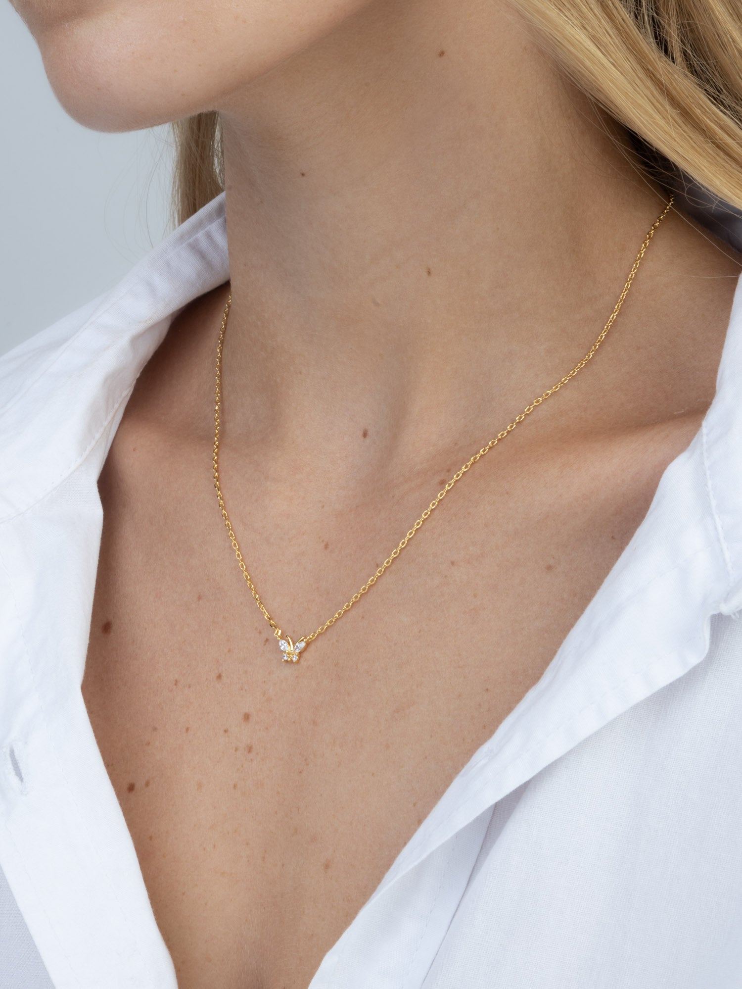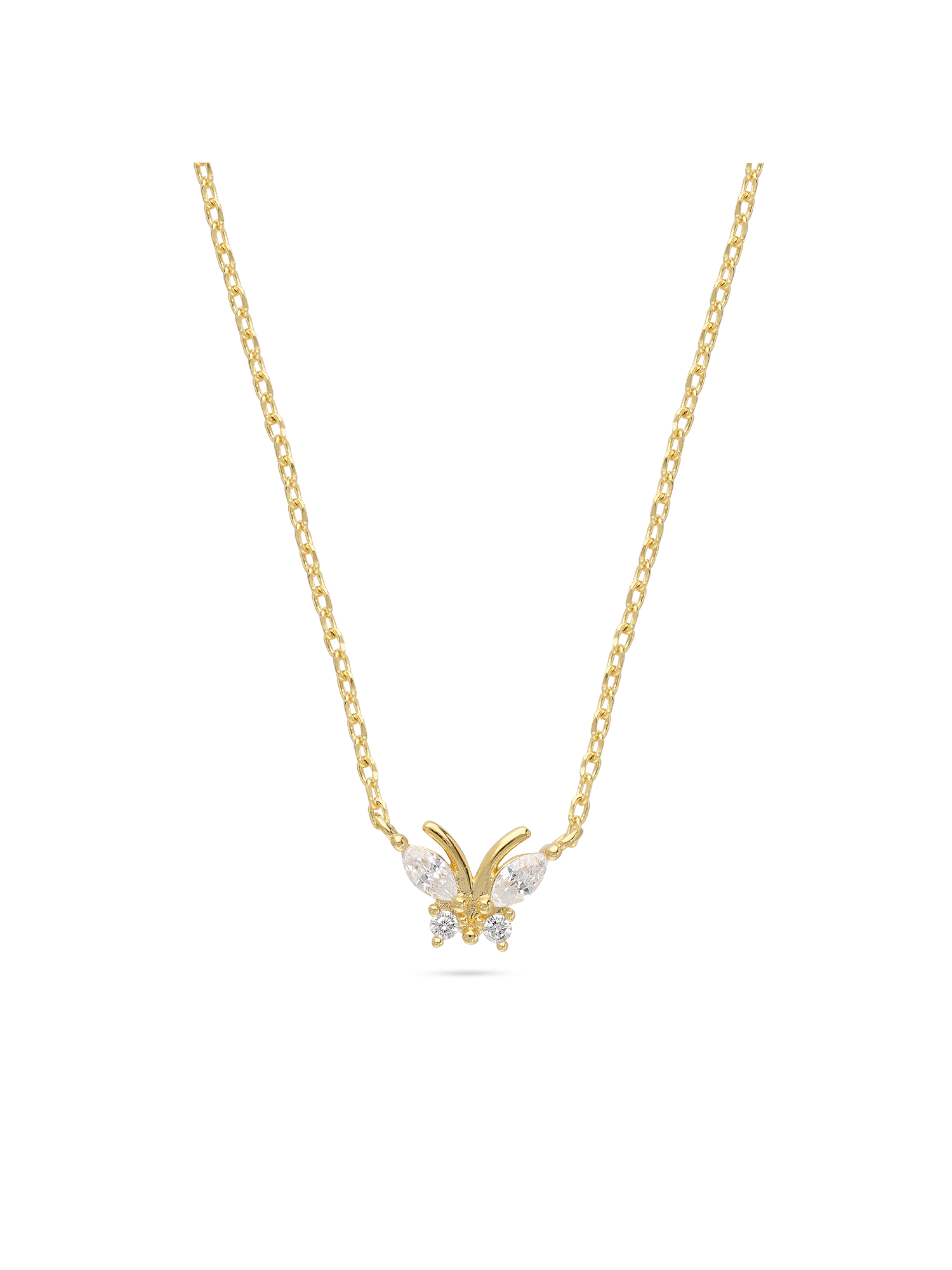 Collar colgante, Bañado en oro, Zirconia cúbica artificial, Claro, Mariposa, Artificial, Color dorado, longitud del colgante: 0.7 cm, ancho colgante: 1.0 cm, 2.52 g