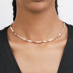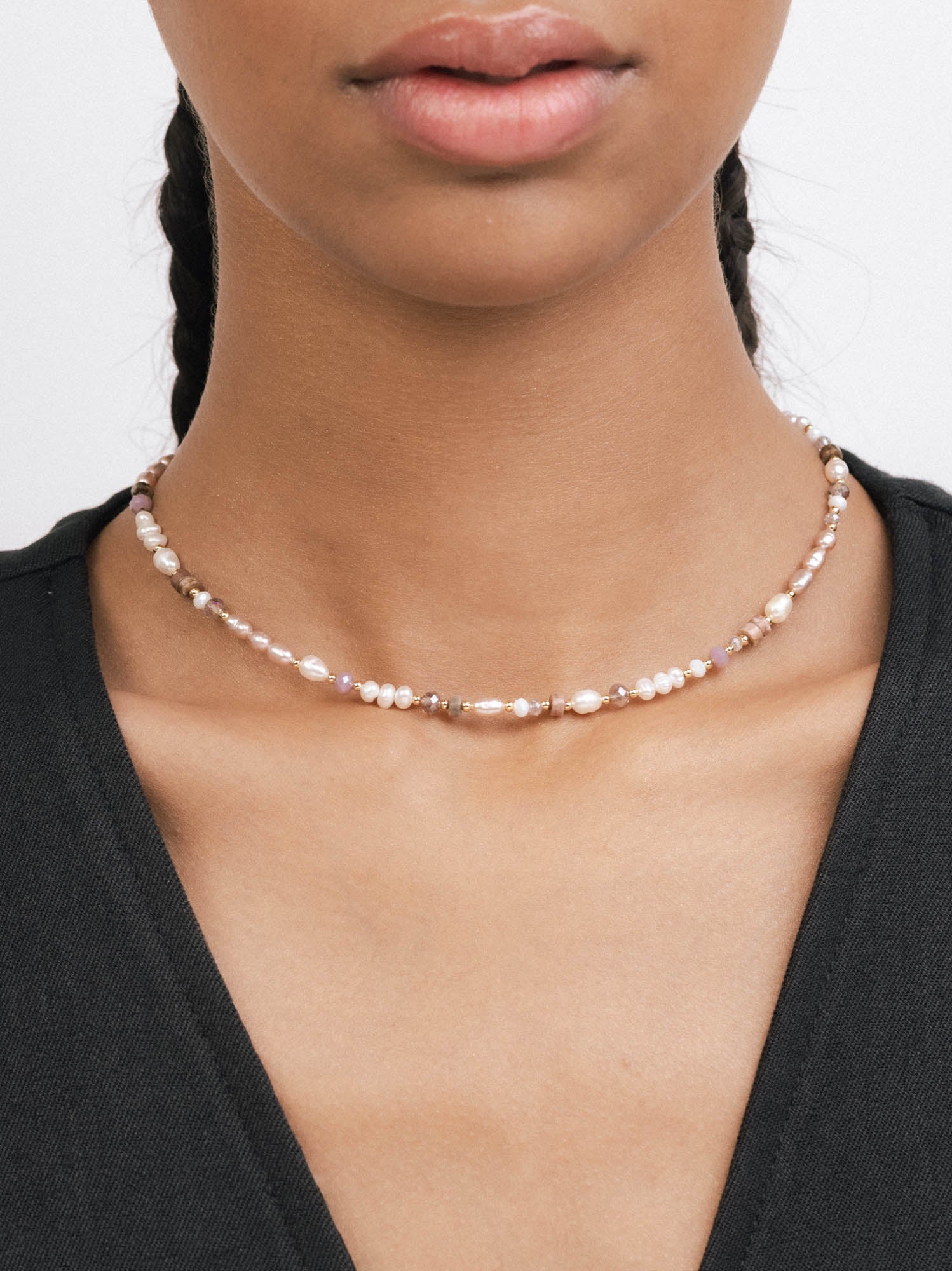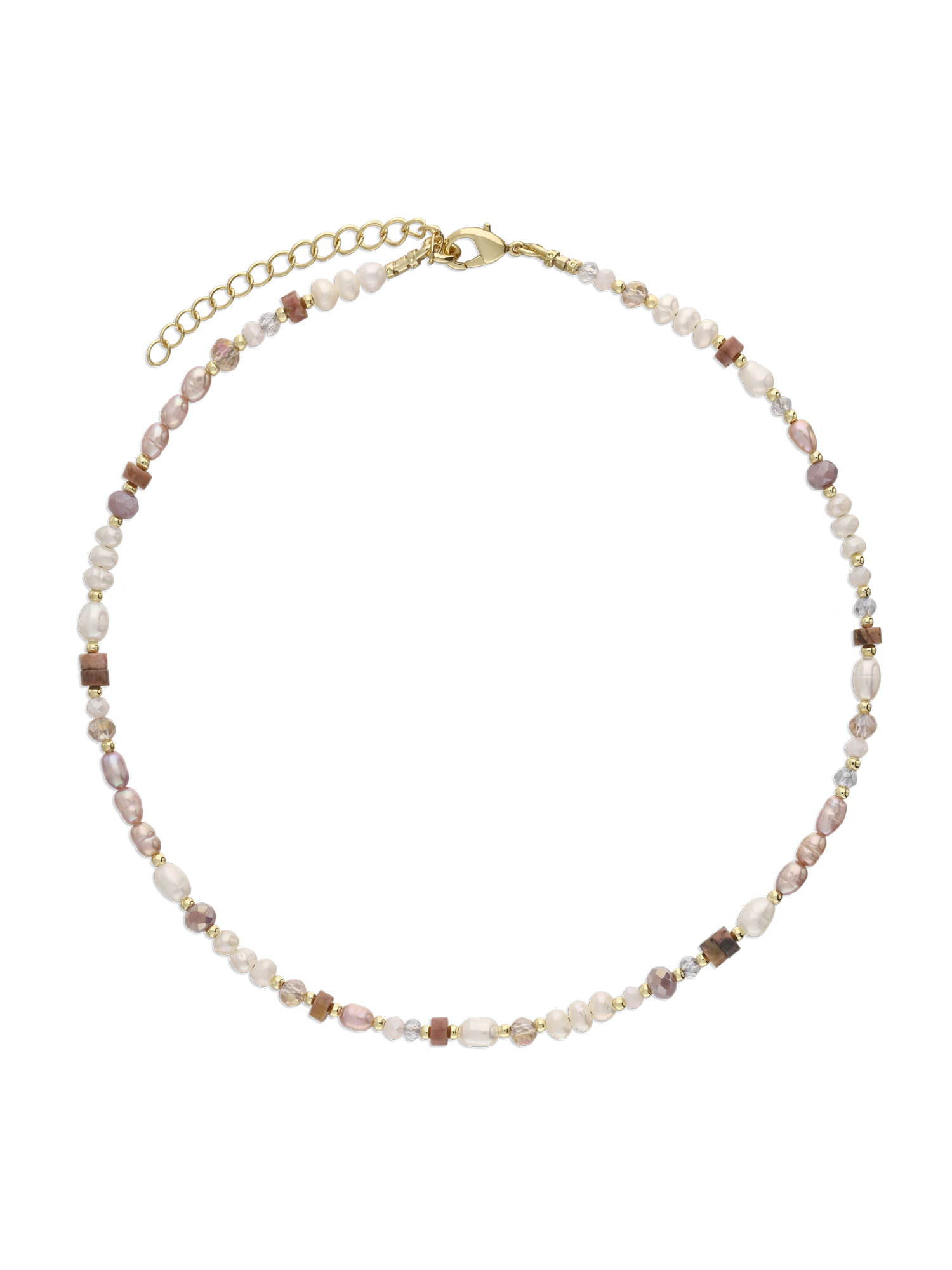 Collar gargantilla, Bañado en oro, Perla cultivada, Vidrio de plomo, Rodolita artificial