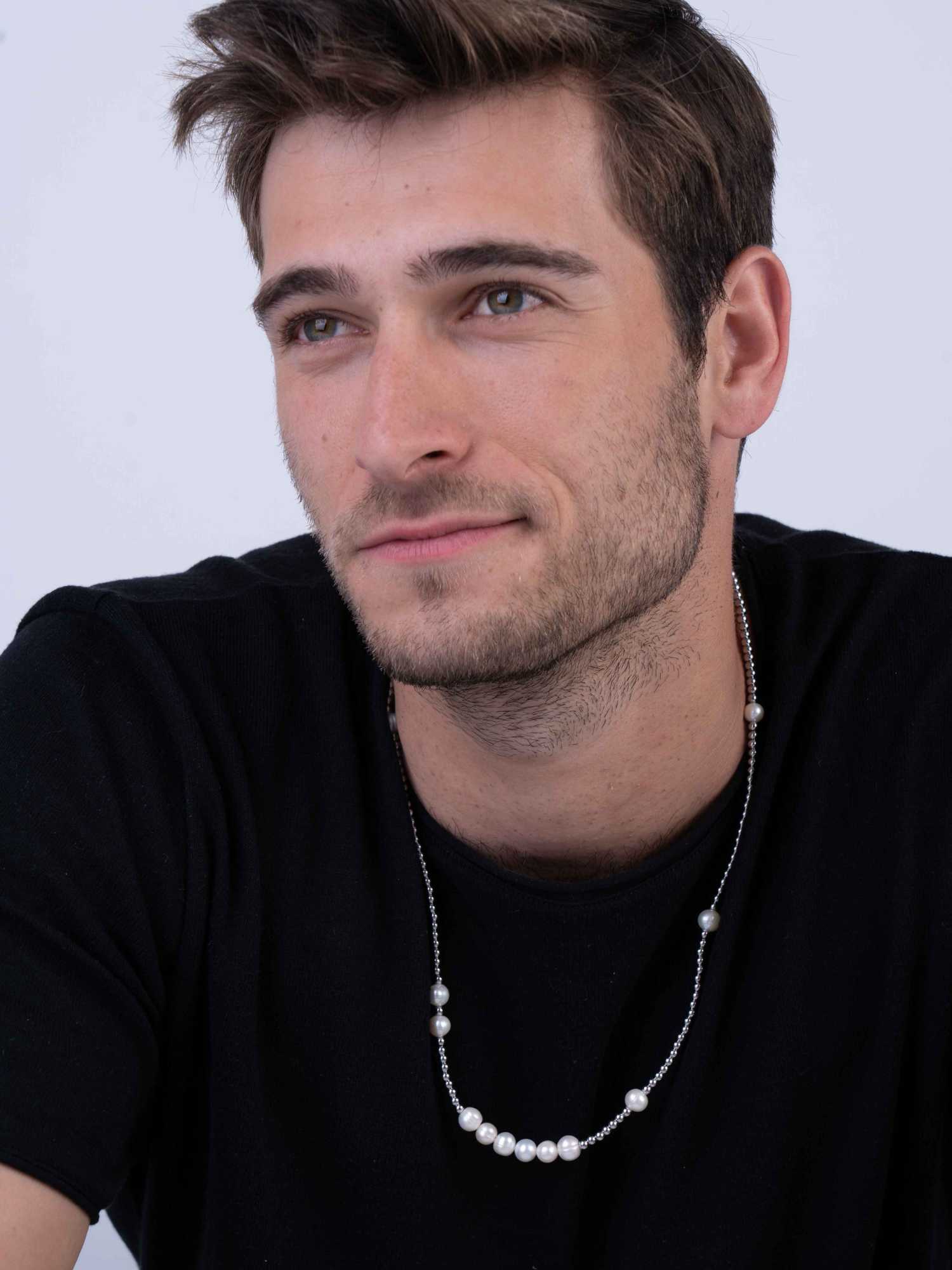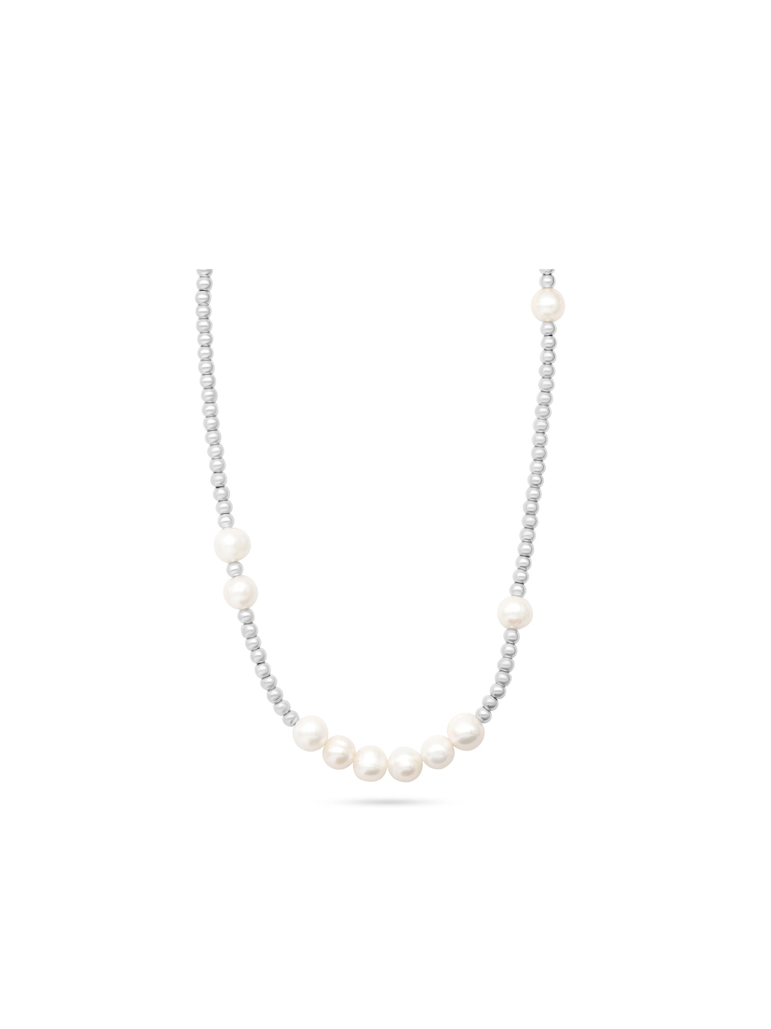 collar de hombre, Acero inoxidable, Perla cultivada, Blanco, Círculo, Color plateado, 32.60 g