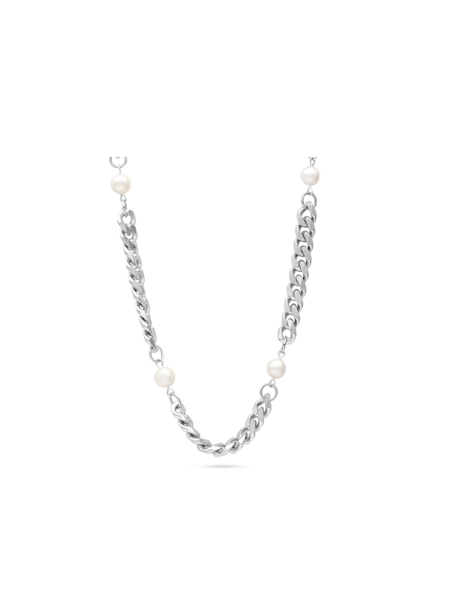 collar de hombre, Acero inoxidable, Perla cultivada, Blanco, Círculo, Color plateado, 48.40 g