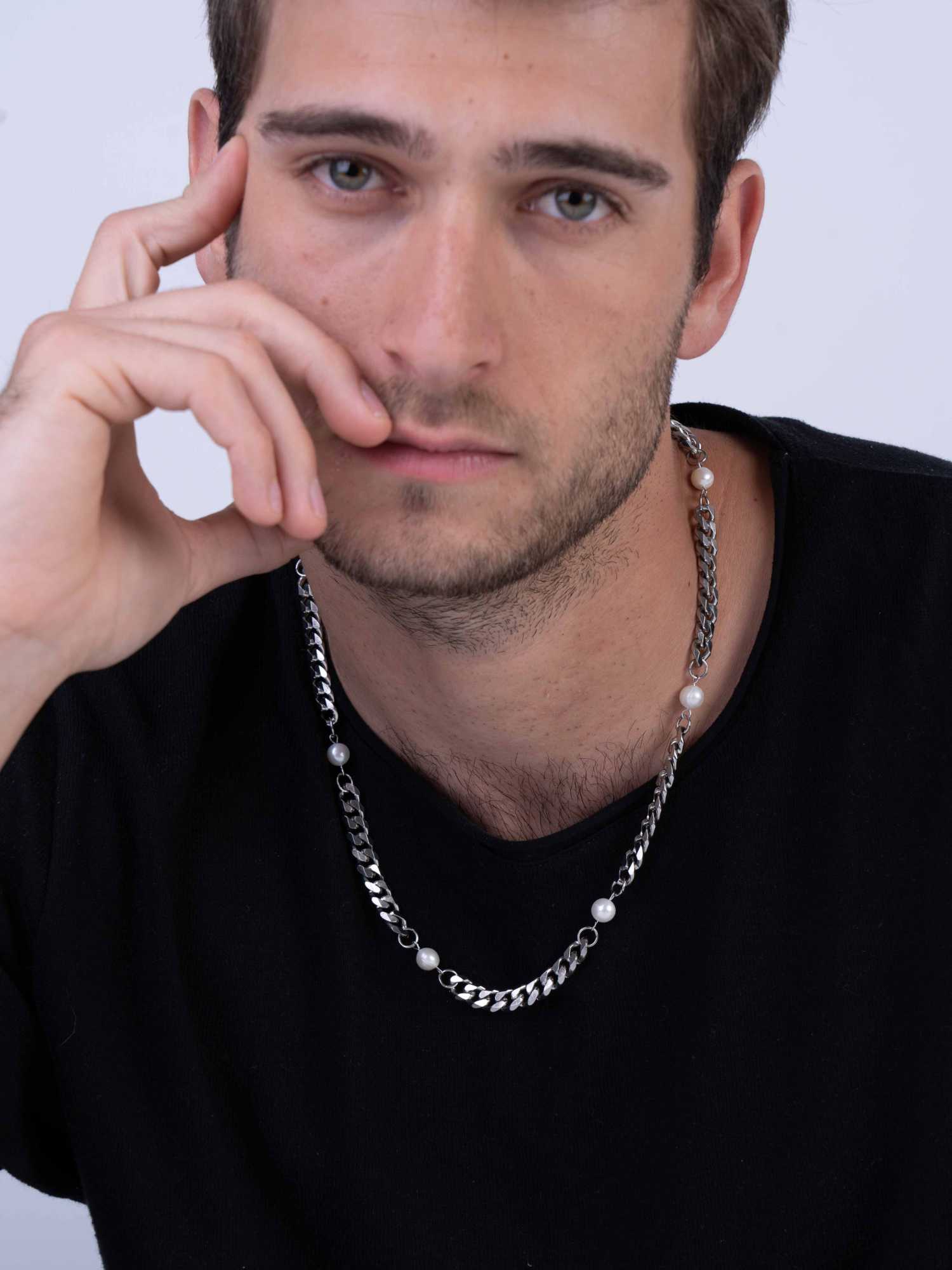 collar de hombre, Acero inoxidable, Perla cultivada