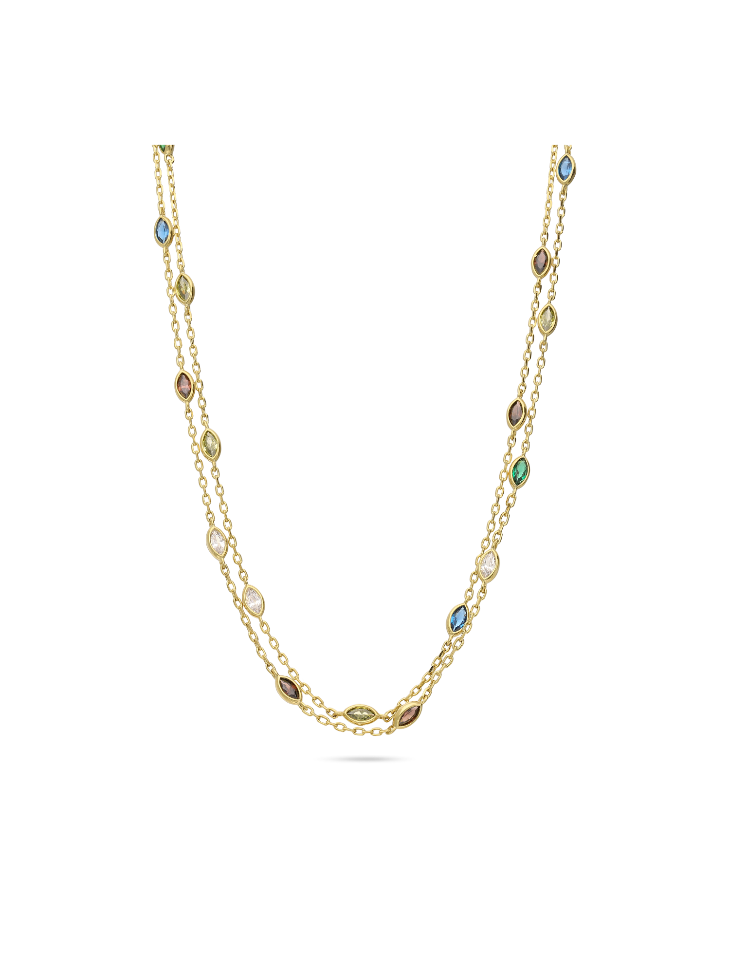 Collar Delicado y Festivo, Cadena de elementos, Bañado en oro, Zirconia cúbica artificial, Multicolor, Círculo, Artificial, Color dorado, 5.78 g