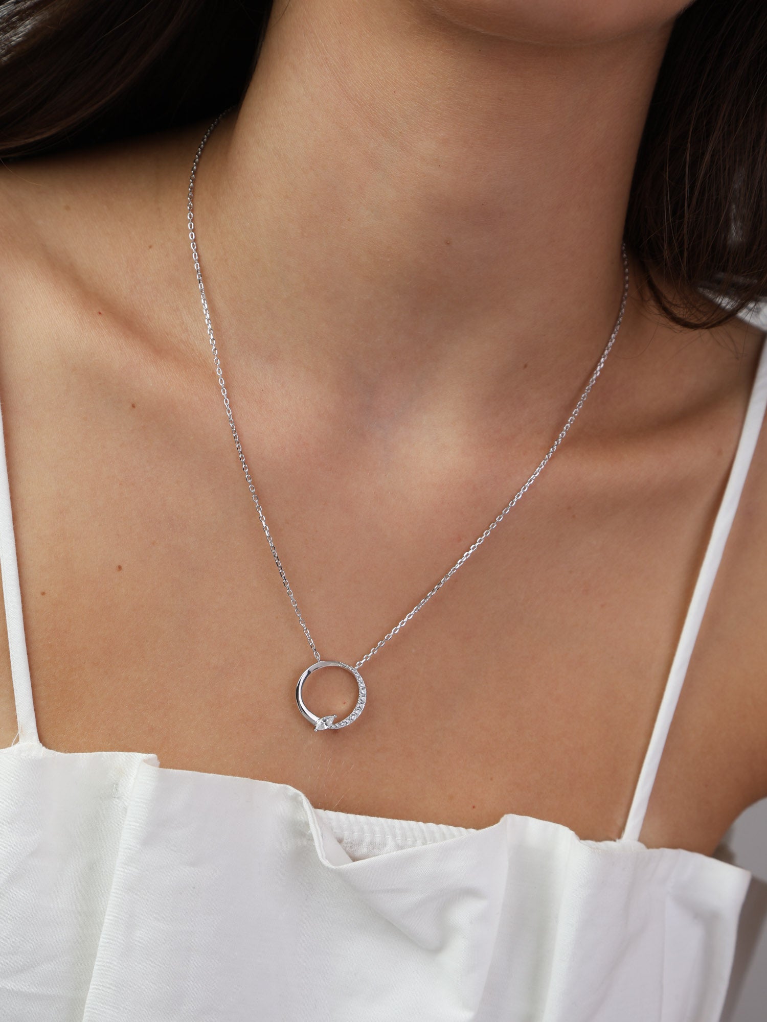 Collar colgante, Plata 925 bañada en rodio, Zirconia cúbica artificial, Claro, Círculo, Artificial, Color plateado, longitud del colgante: 2.0 cm, ancho colgante: 2.0 cm, 3.86 g