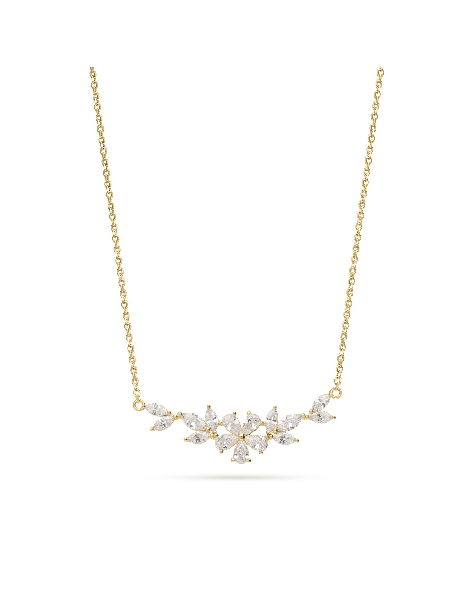 Collar Delicado y Festivo, Bañado en oro, Zirconia cúbica artificial, Claro, Flor, Artificial, Color dorado, 4.46 g