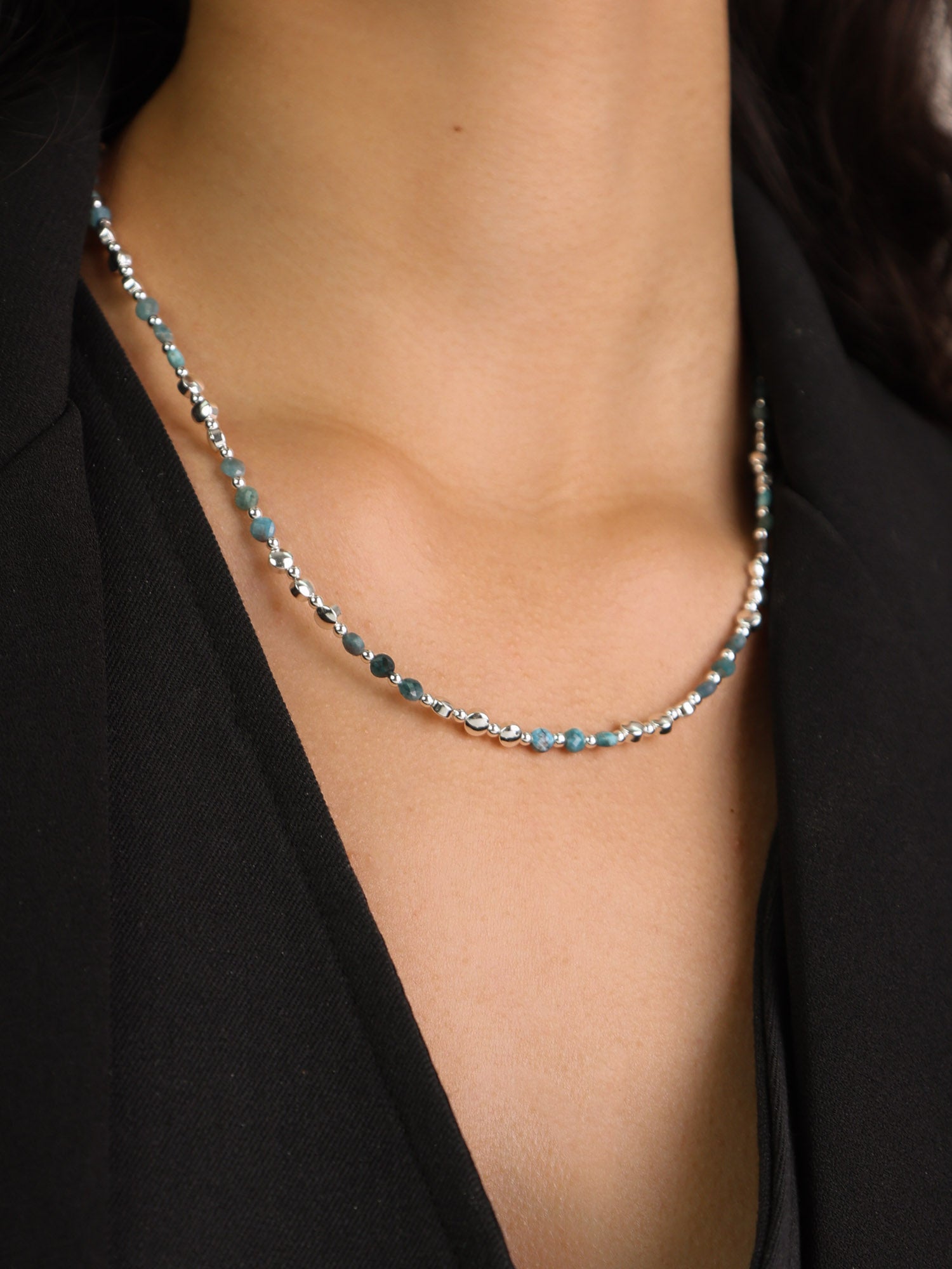 collar de piedra, Piedras de hematita con metales, Hematita artificial, Azul, Círculo, Artificial, Color plateado, 17.40 g
