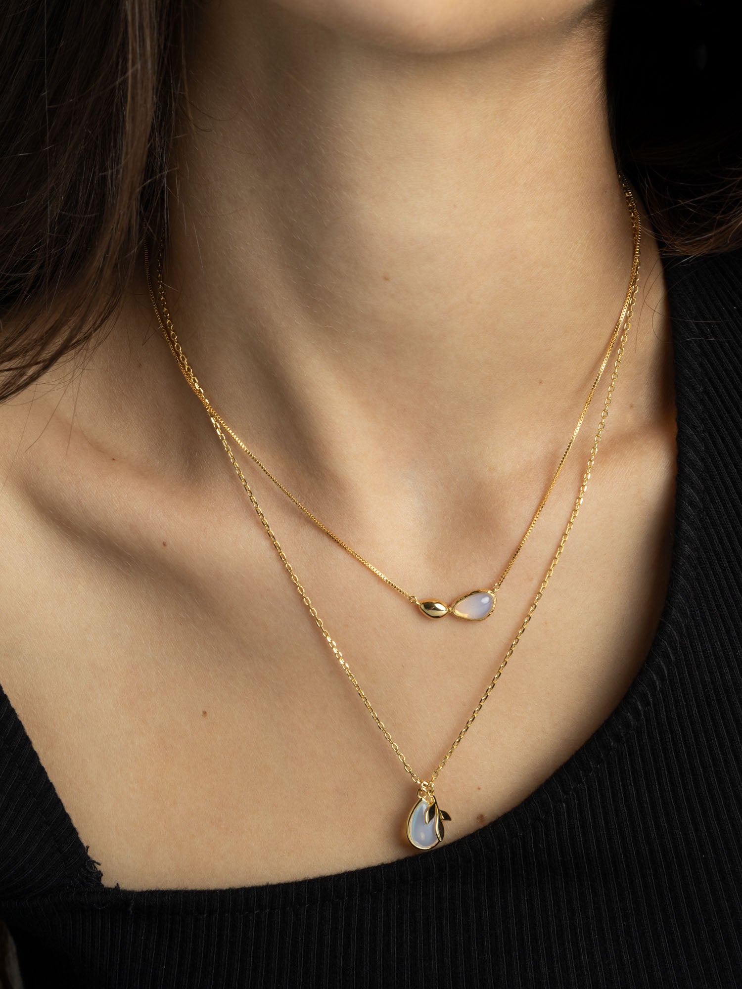 Collar colgante, Bañado en oro, Opalita artificial