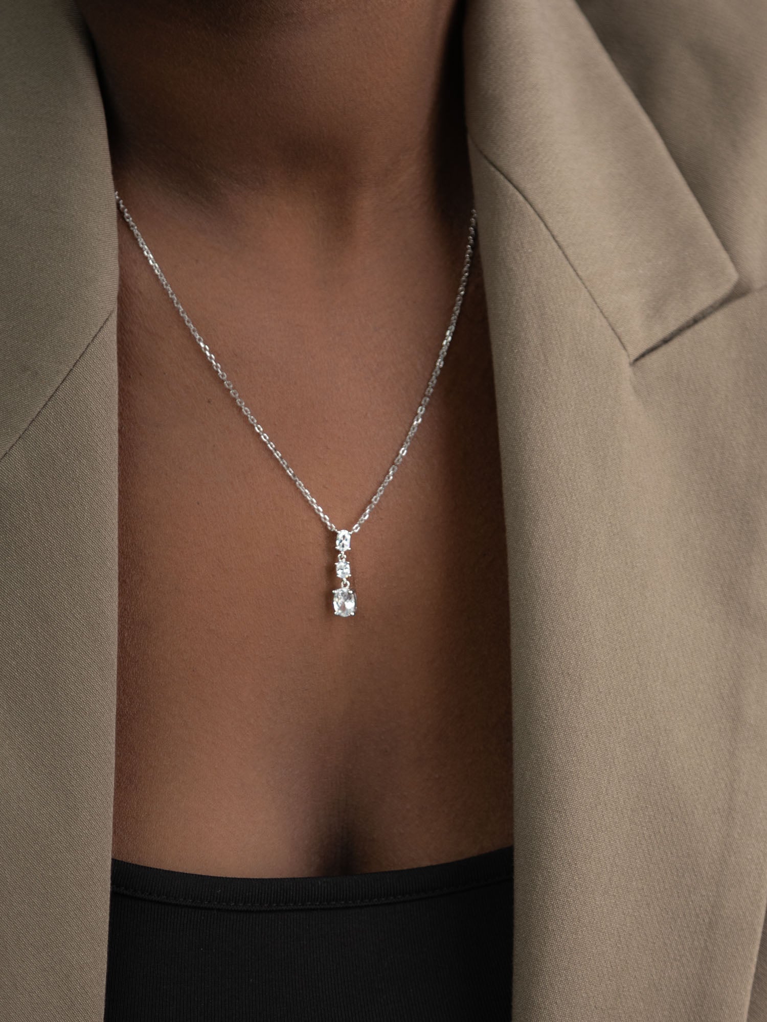 Collar colgante, Plata 925 bañada en rodio, Zirconia cúbica artificial