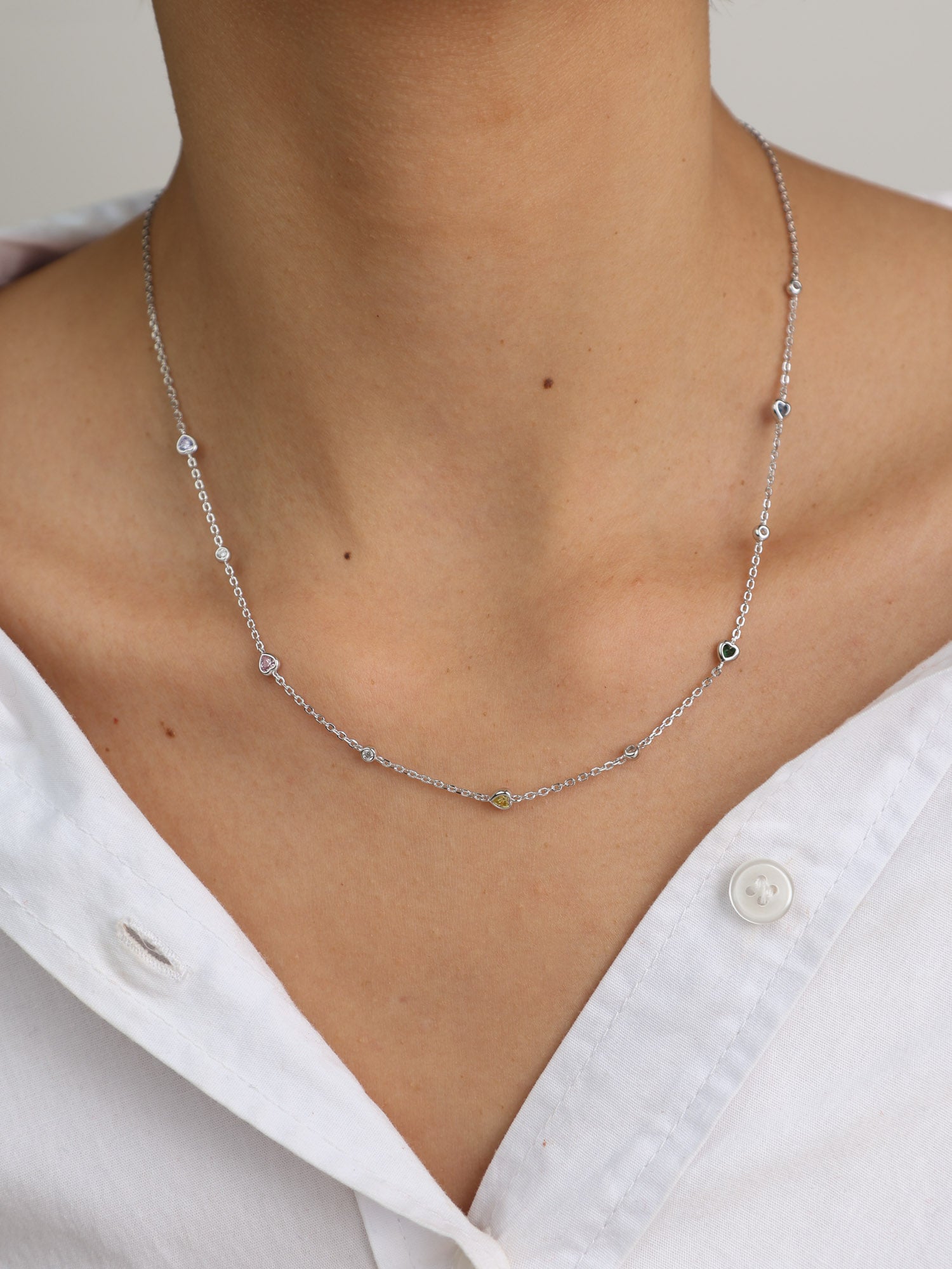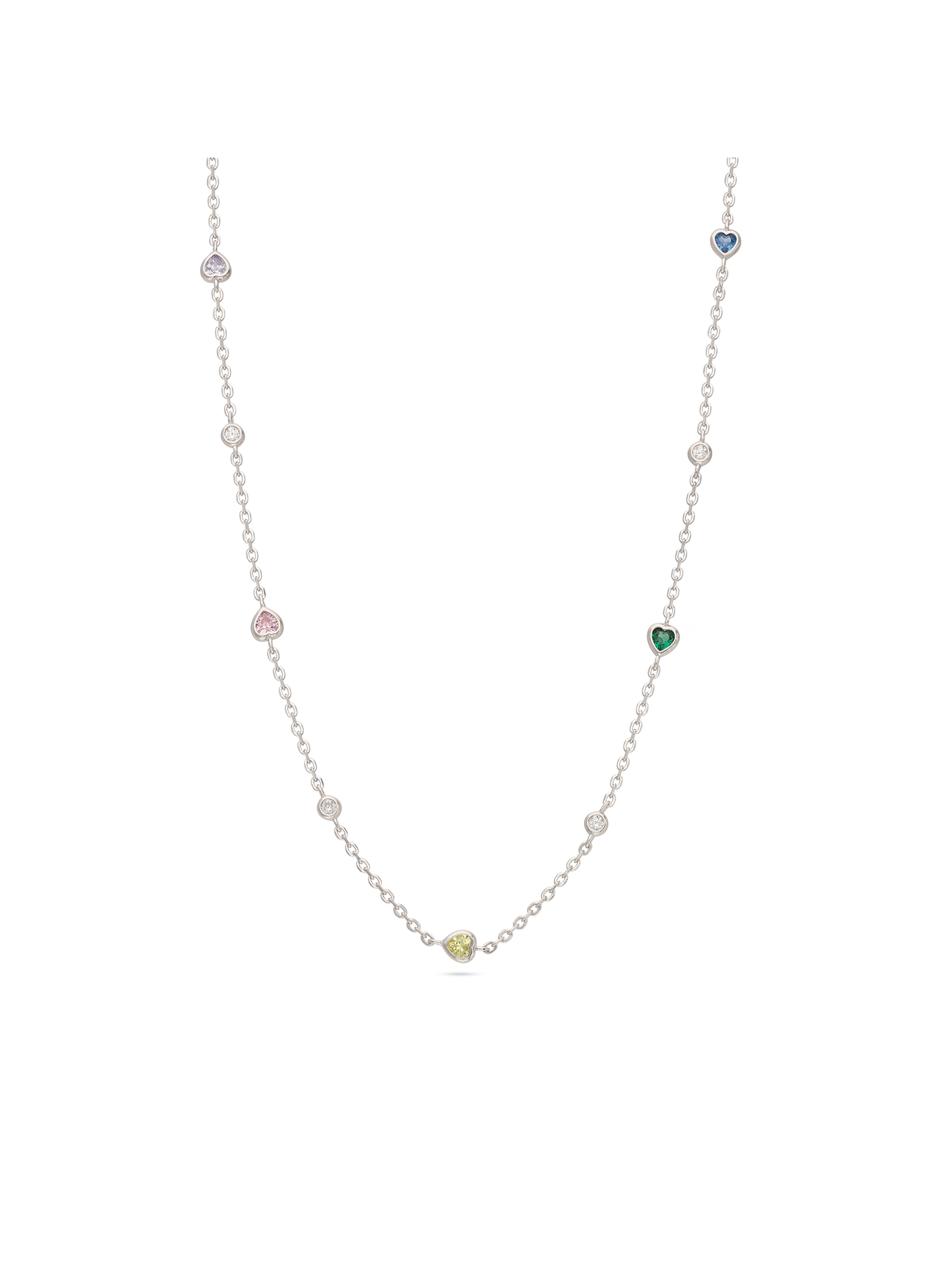 Cadena de elementos, Plata 925 bañada en rodio, Zirconia cúbica artificial, Multicolor, Corazón, Artificial, Color plateado, 3.74 g