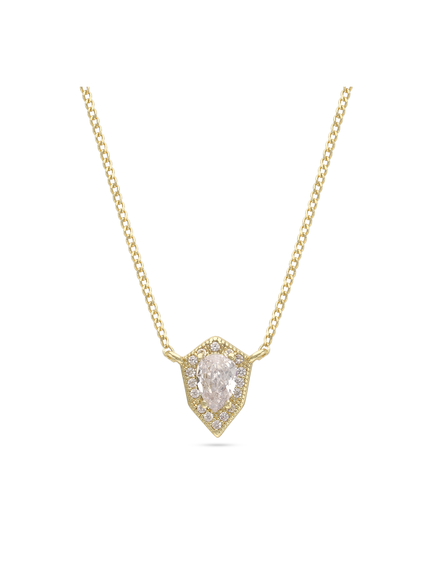 Collar colgante, Bañado en oro, Zirconia cúbica artificial, Claro, Lágrima, Artificial, Color dorado, 3.00 g