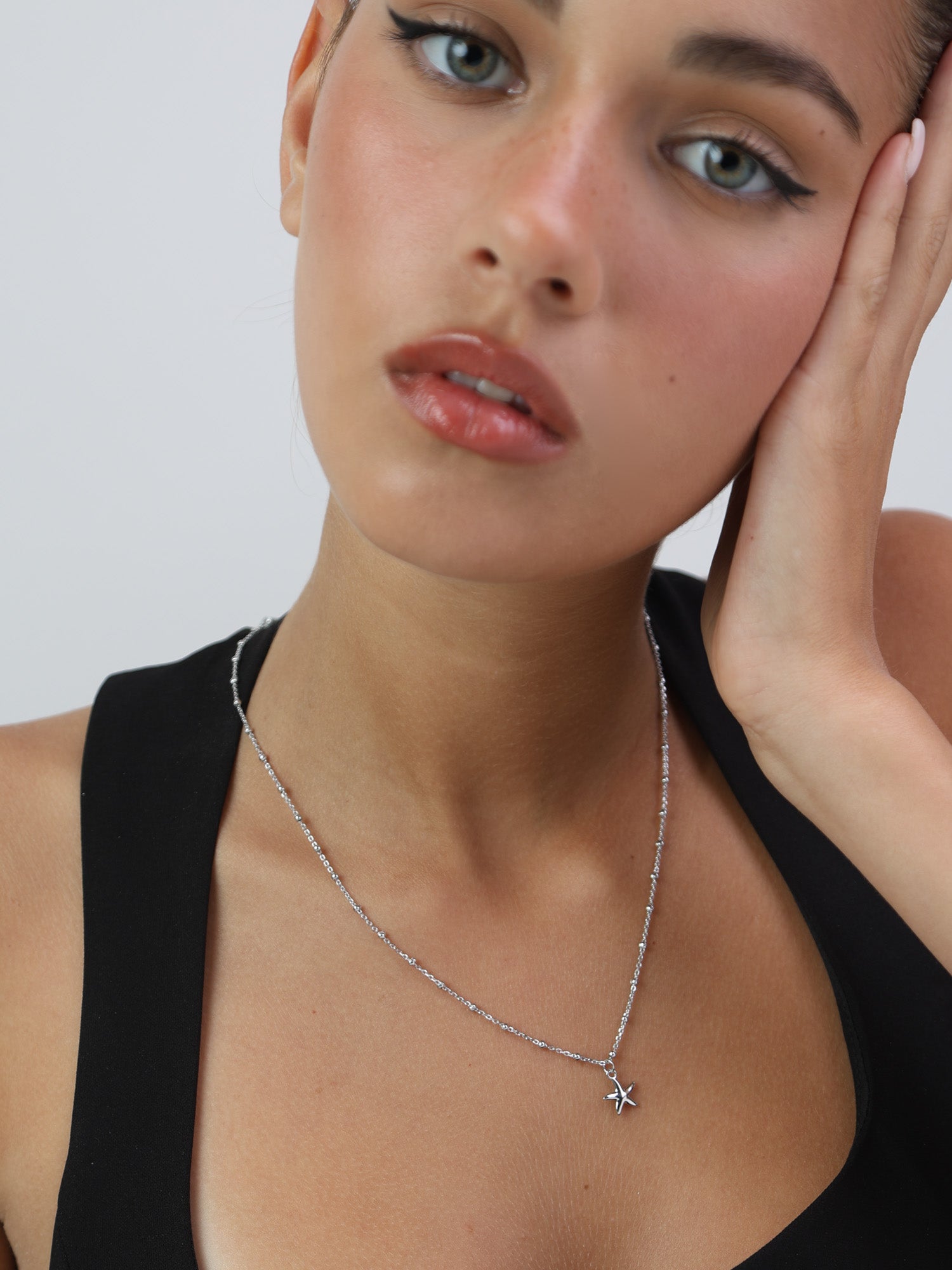 Collar colgante, Plata 925 bañada en rodio, Sin piedra, Sin color, Círculo, Estrella de mar, Color plateado, ancho colgante: 0.9 cm, longitud del colgante: 1.2 cm, 3.98 g