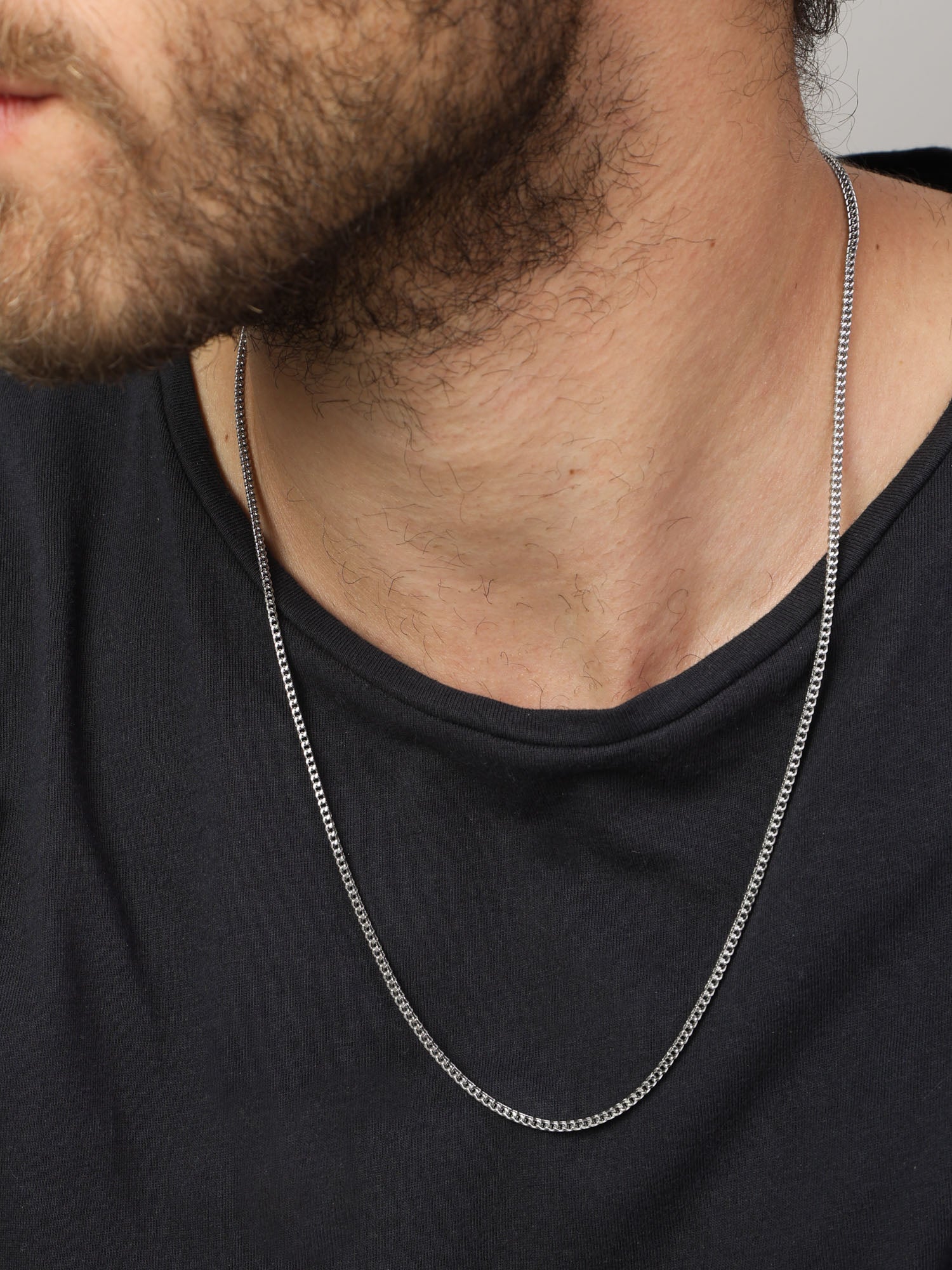 collar de hombre, Acero inoxidable, Sin piedra, Sin color, Forma no específica, Color plateado, 9.00 g