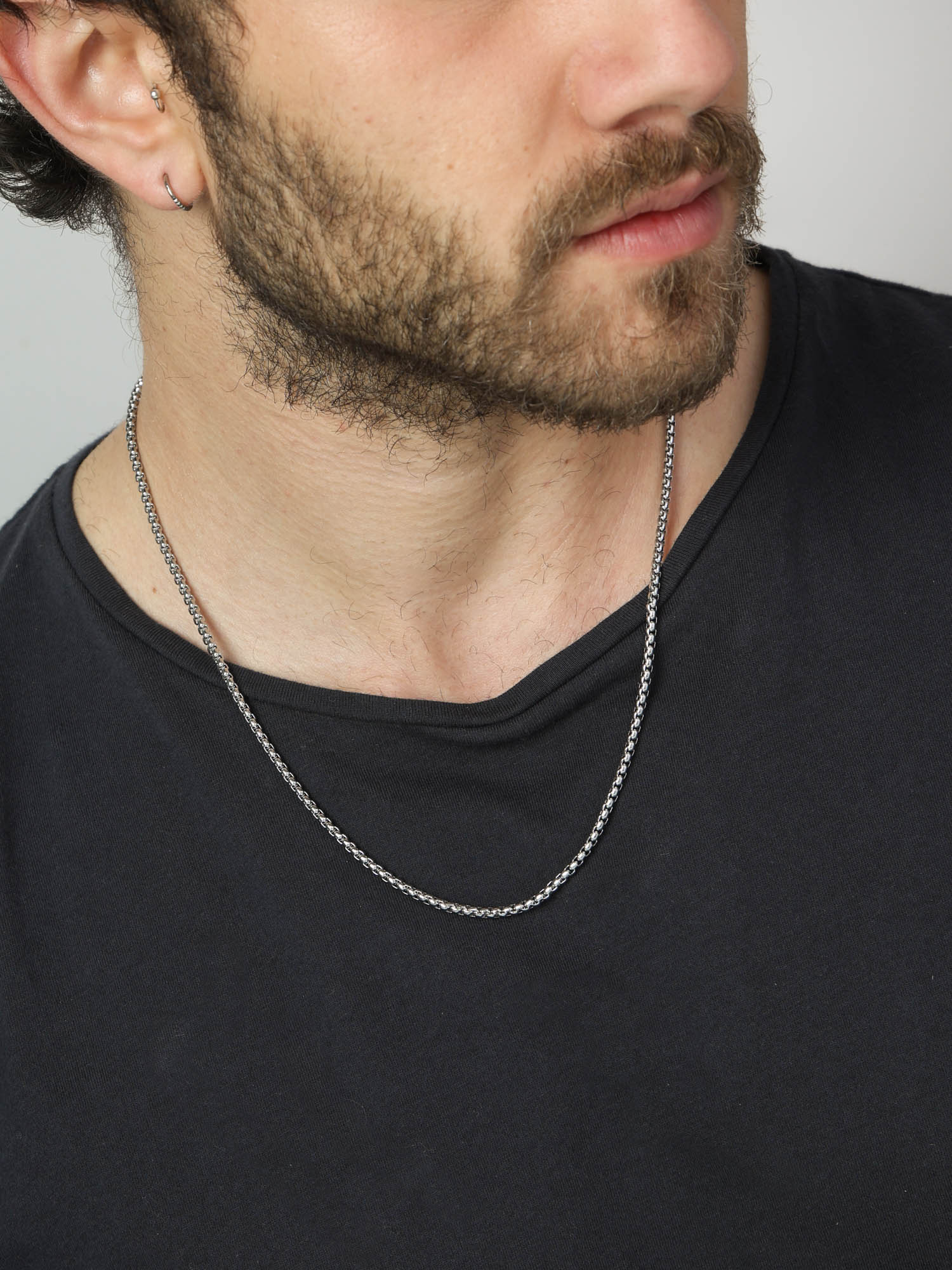 collar de hombre, Acero inoxidable, Sin piedra, Sin color, Forma no específica, Color plateado, 15.70 g