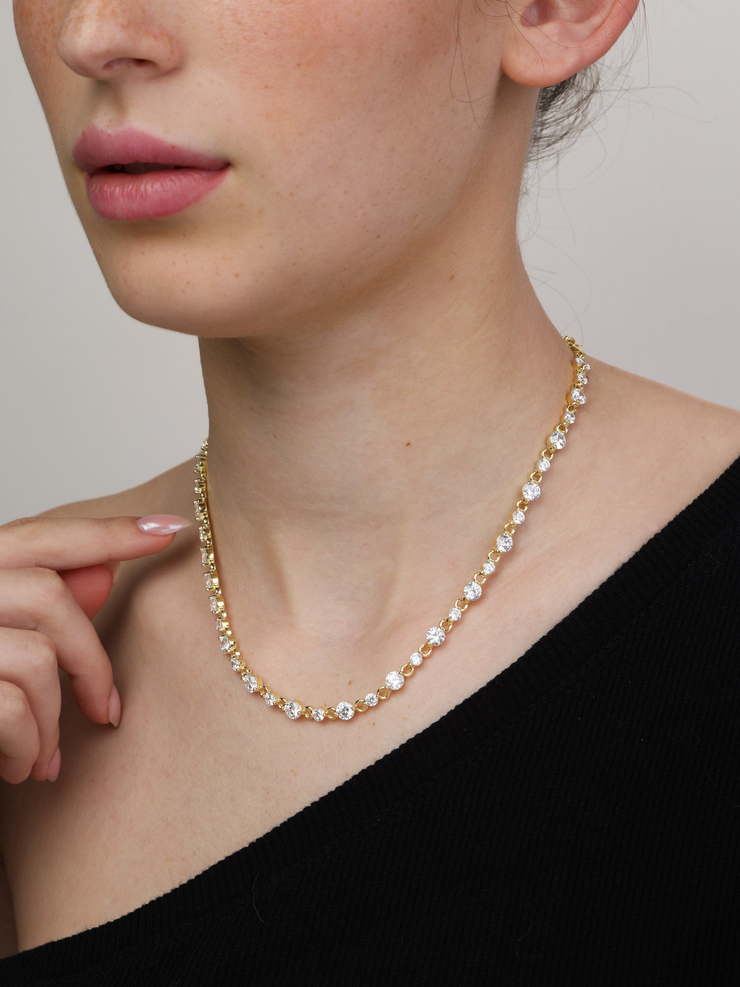 collar de tenis, Bañado en oro, Zirconia cúbica artificial, Claro, Círculo, Artificial, Color dorado, 21.51 g