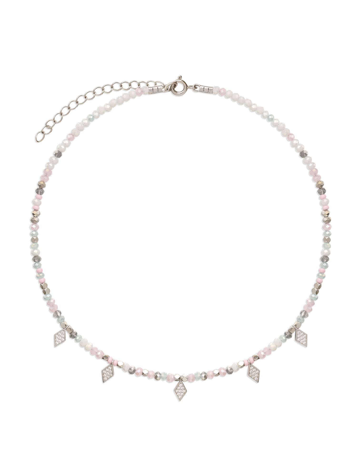 Collar gargantilla, Plata 925 bañada en rodio, Zirconia cúbica artificial, Vidrio de plomo, Multicolor, Cuadrado, Círculo, Artificial, Color plateado, 6.35 g