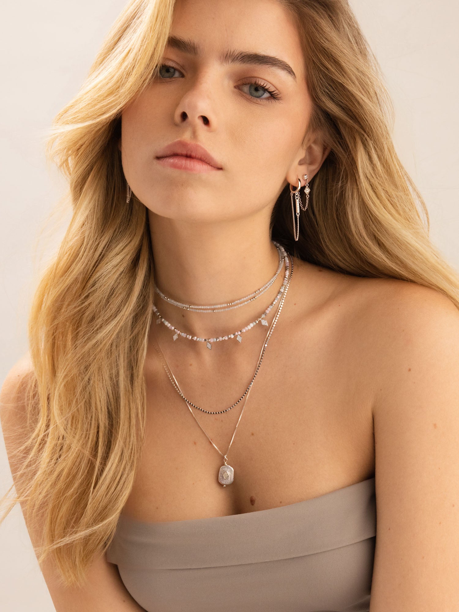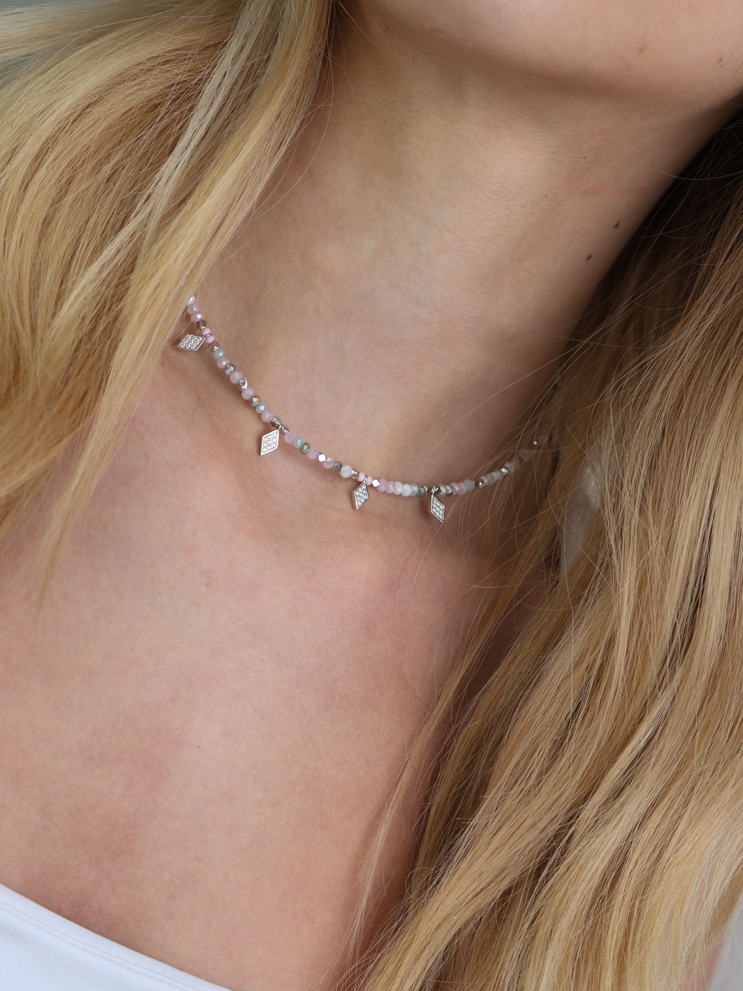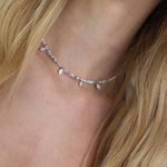 Collar gargantilla, Plata 925 bañada en rodio, Zirconia cúbica artificial, Vidrio de plomo
