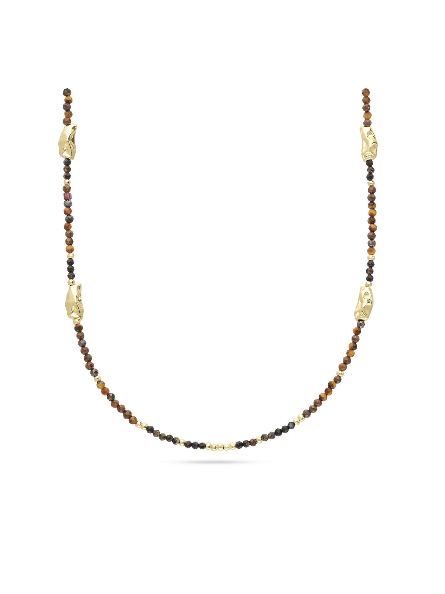 collar de piedra, Bañado en oro, Ágata artificial, Ojo de tigre artificial