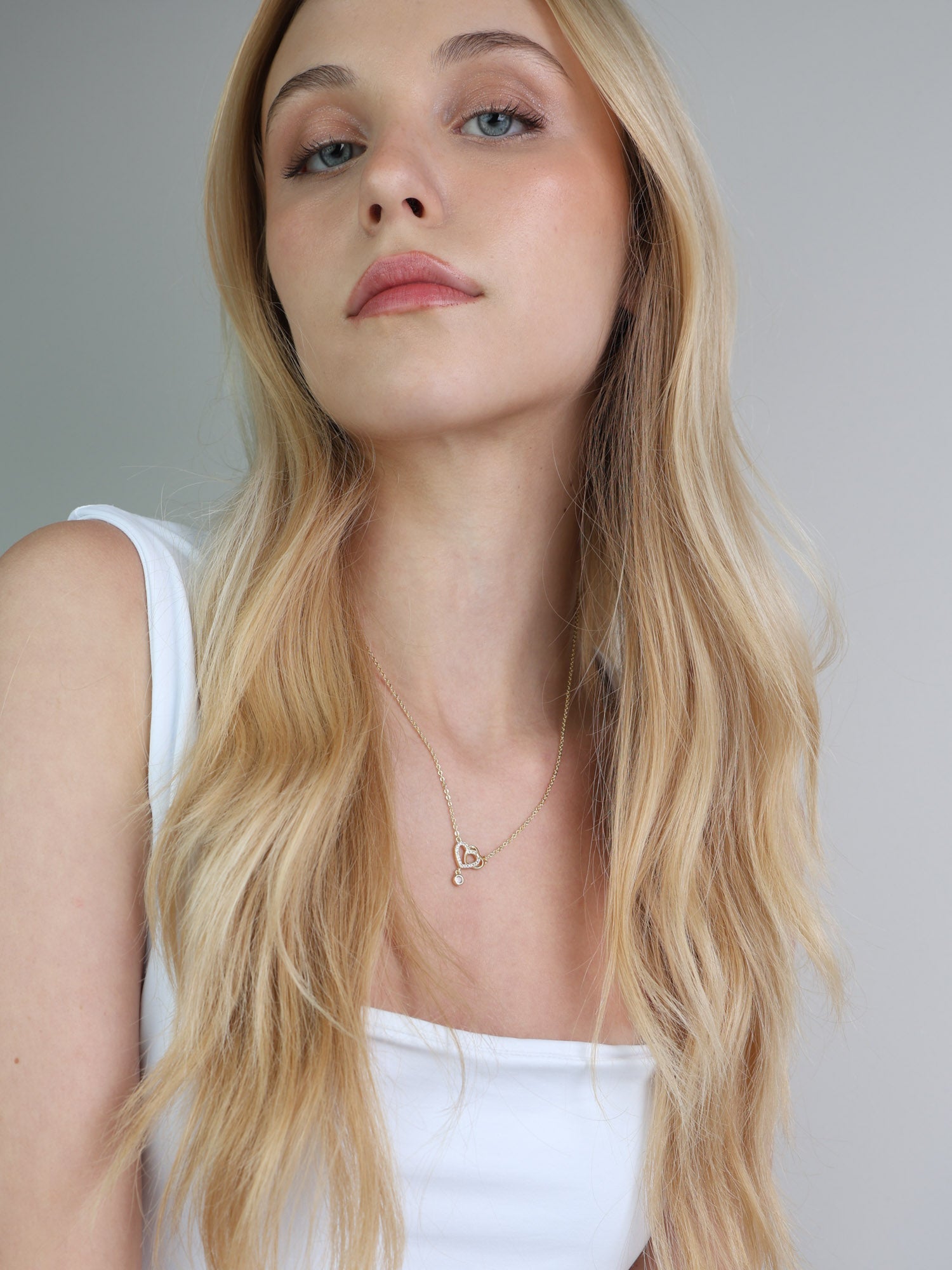 Collar colgante, Bañado en oro, Zirconia cúbica artificial, Claro, Corazón, Artificial, Color dorado, longitud del colgante: 18.0 mm, ancho colgante: 15.0 mm, 2.55 g