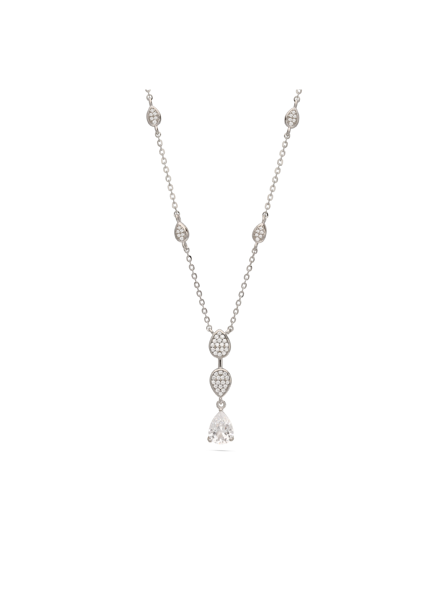 Collar colgante, Plata 925 bañada en rodio, Zirconia cúbica artificial, Claro, Lágrima, Artificial, Color plateado, longitud del colgante: 2.5 cm, ancho colgante: 0.5 mm, 2.90 g