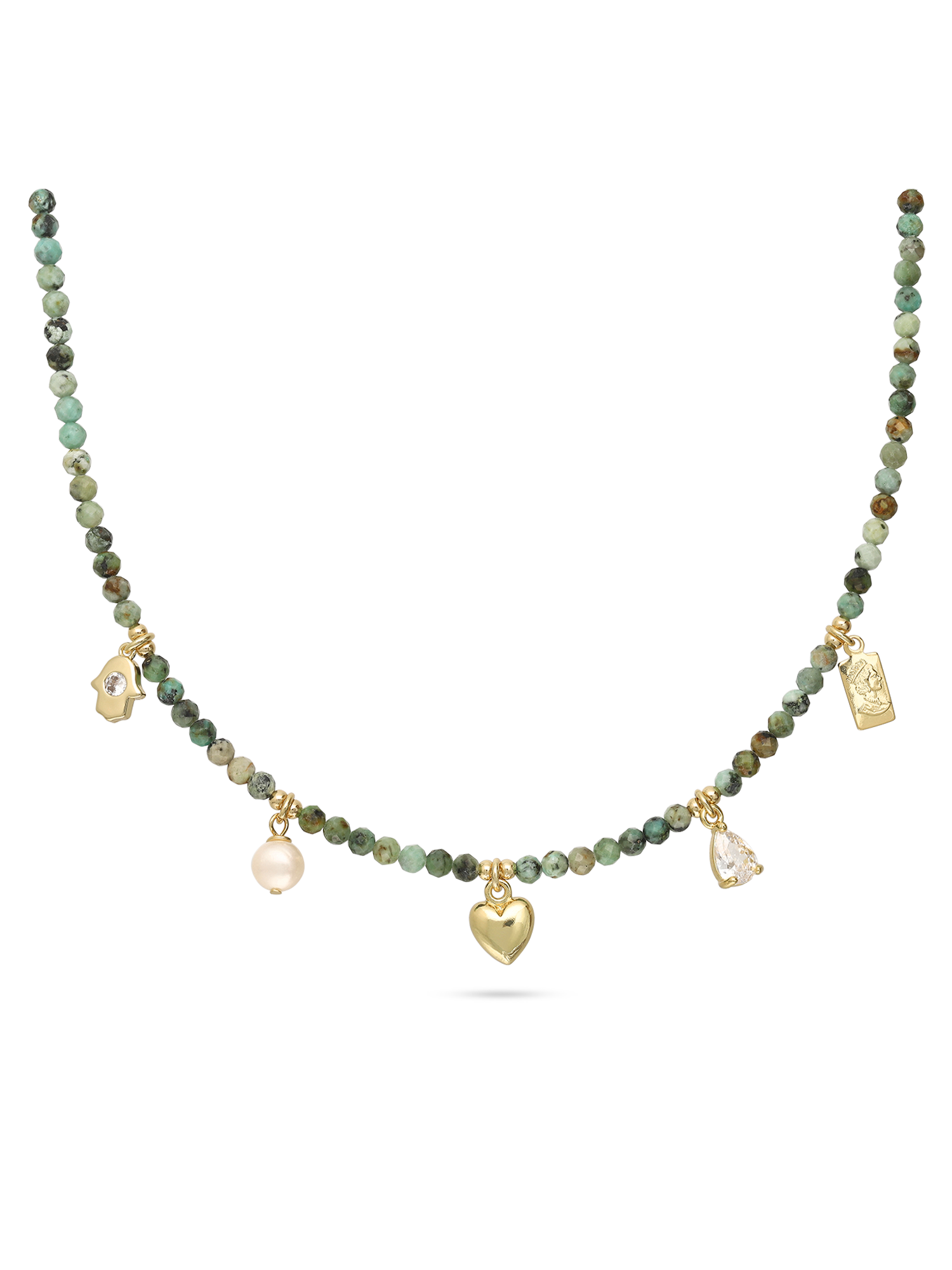 collar de piedra, Bañado en oro, Zirconia cúbica artificial, Perla cultivada, Turquesa artificial, Multicolor, Variedad de formas, Artificial, Color dorado, 10.20 g