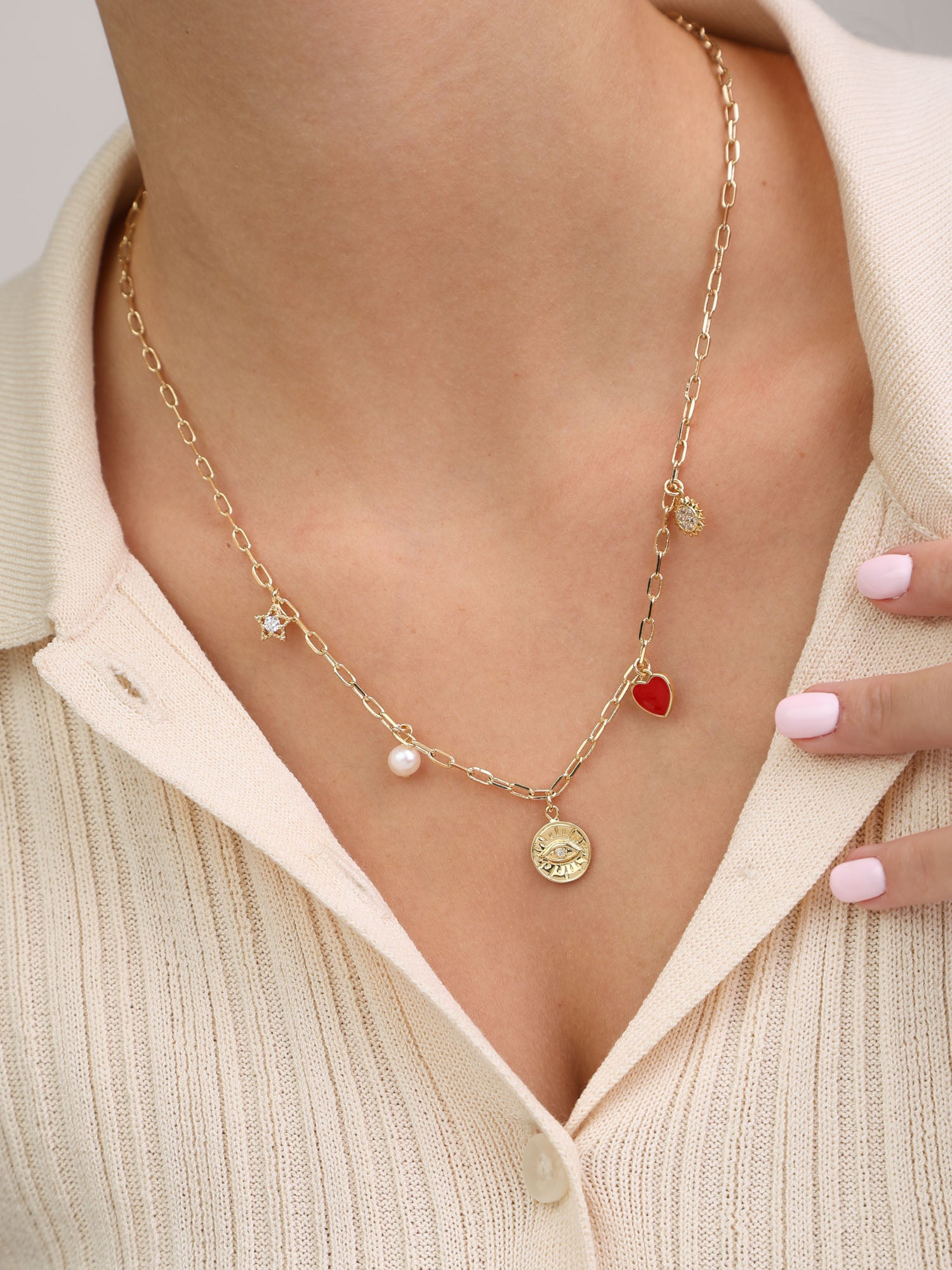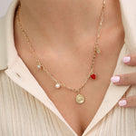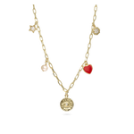 Cadena de elementos, Bañado en oro, Zirconia cúbica artificial, Perla cultivada, Esmalte, Multicolor, Variedad de formas, Artificial, Color dorado, 7.56 g