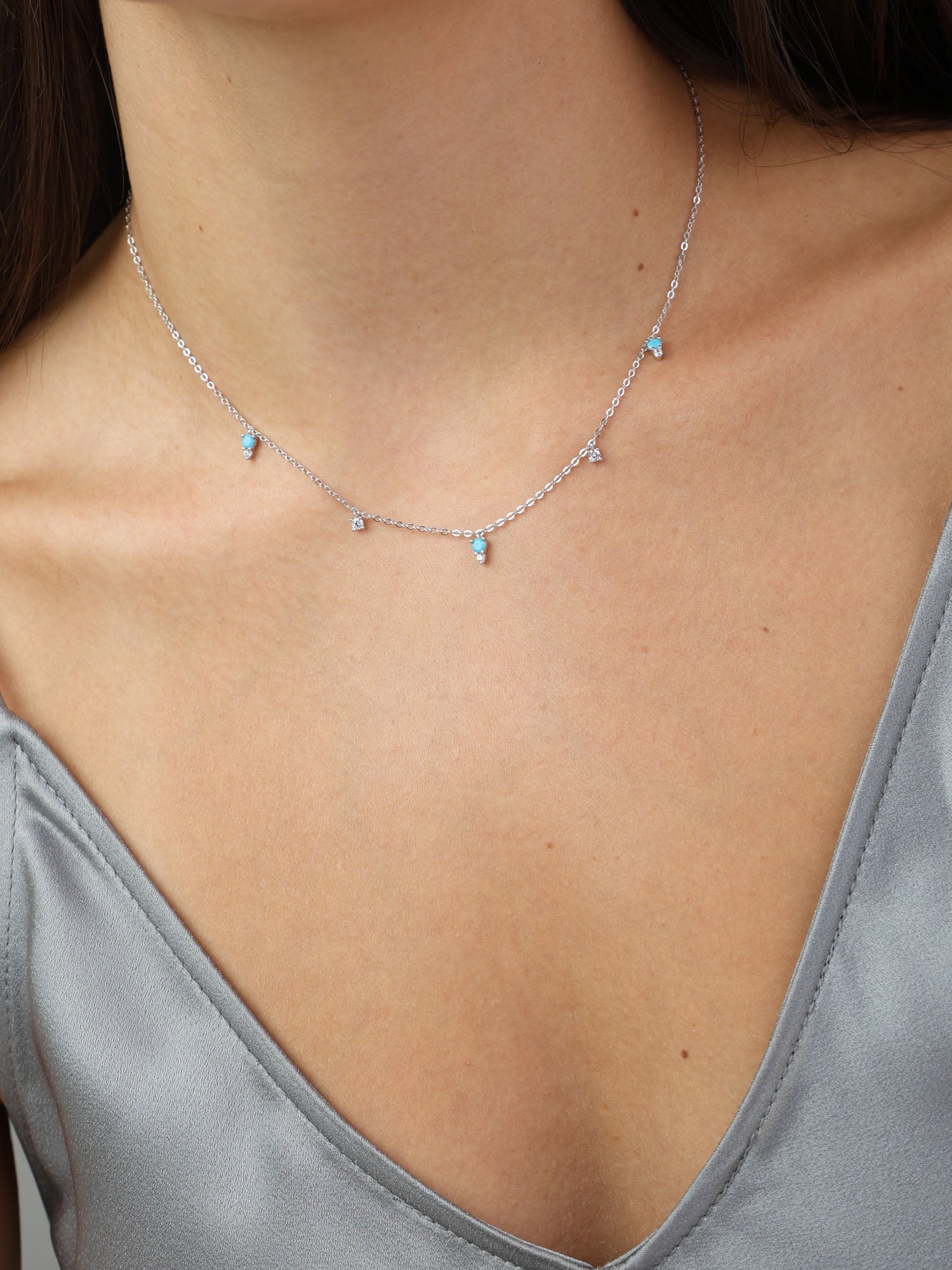 Cadena de elementos, Plata 925 bañada en rodio, Zirconia cúbica artificial, Turquesa, Claro, Círculo, Artificial, Color plateado, 2.00 g