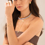 collar de piedra, Bañado en oro, Cuarzo artificial, Celeste, Círculo, Artificial, Color dorado, 36.39 g