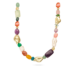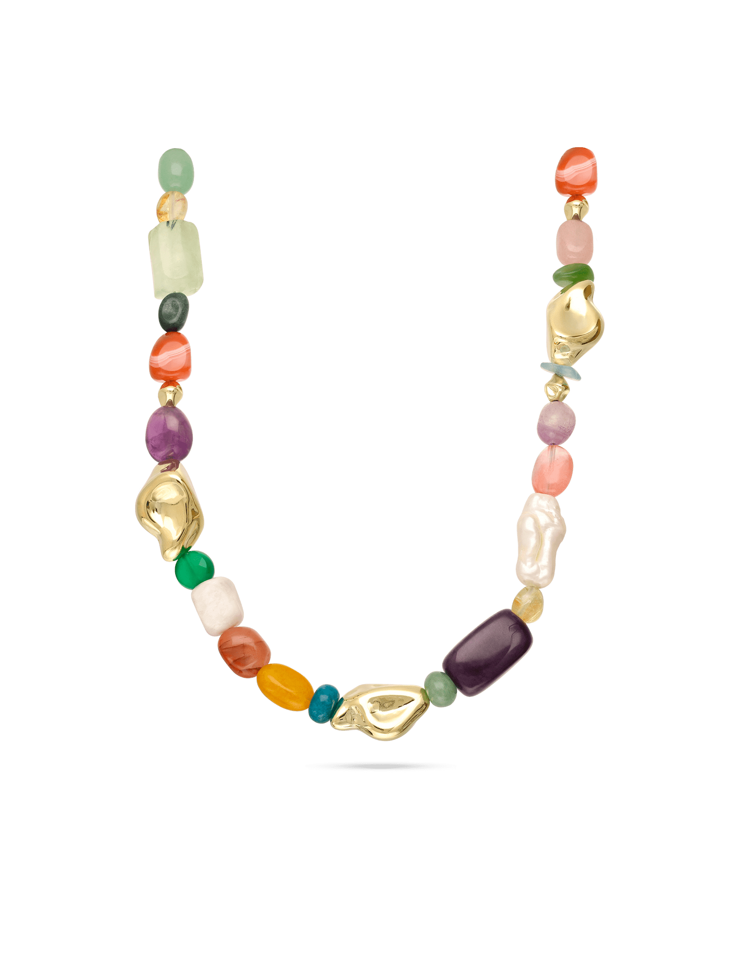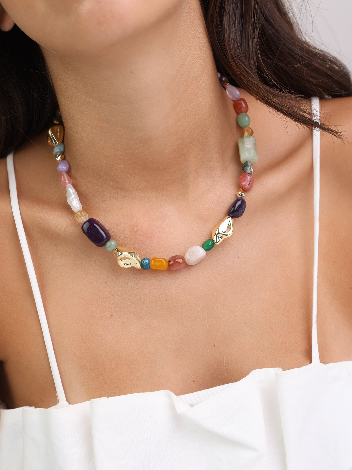 collar de piedra, Bañado en oro, Amatista artificial, Cuarzo rosa artificial, Perla cultivada, Jadeíta artificial, Cuarzo artificial, Multicolor, Variedad de formas, Artificial, Color dorado, 48.26 g