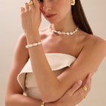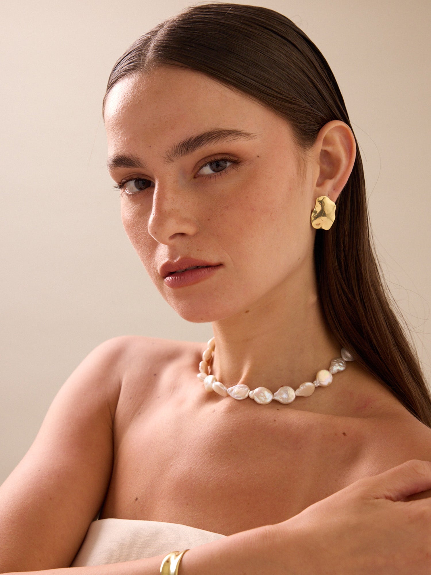 collar de perlas, Bañado en oro, Perla cultivada, Blanco, Variedad de formas, Color dorado, 33.40 g