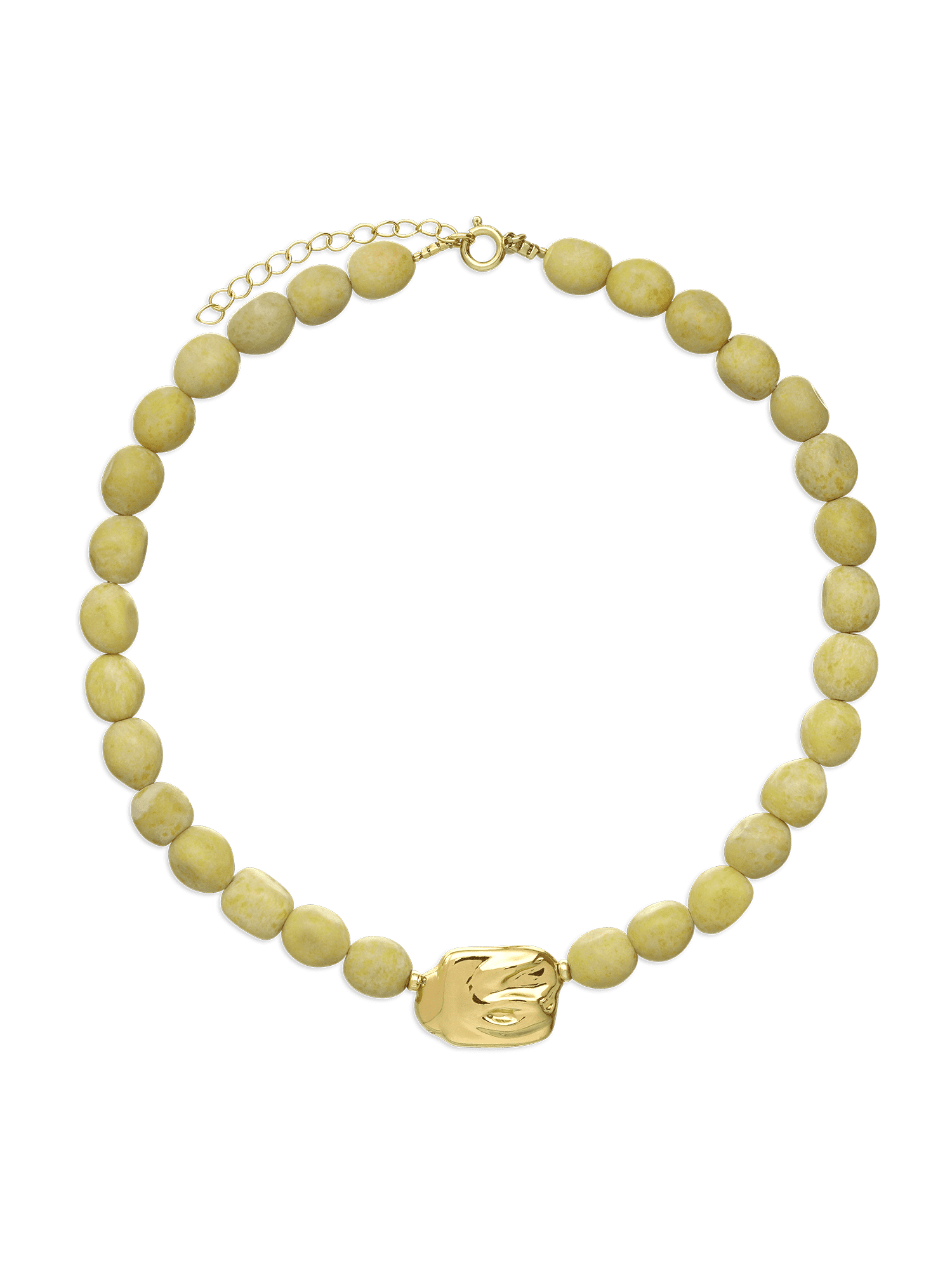 collar de piedra, Bañado en oro, Jadeíta artificial, Rezin