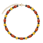 collar de piedra, Bañado en oro, Cornalina artificial, Jadeíta artificial, Cuarzo artificial