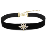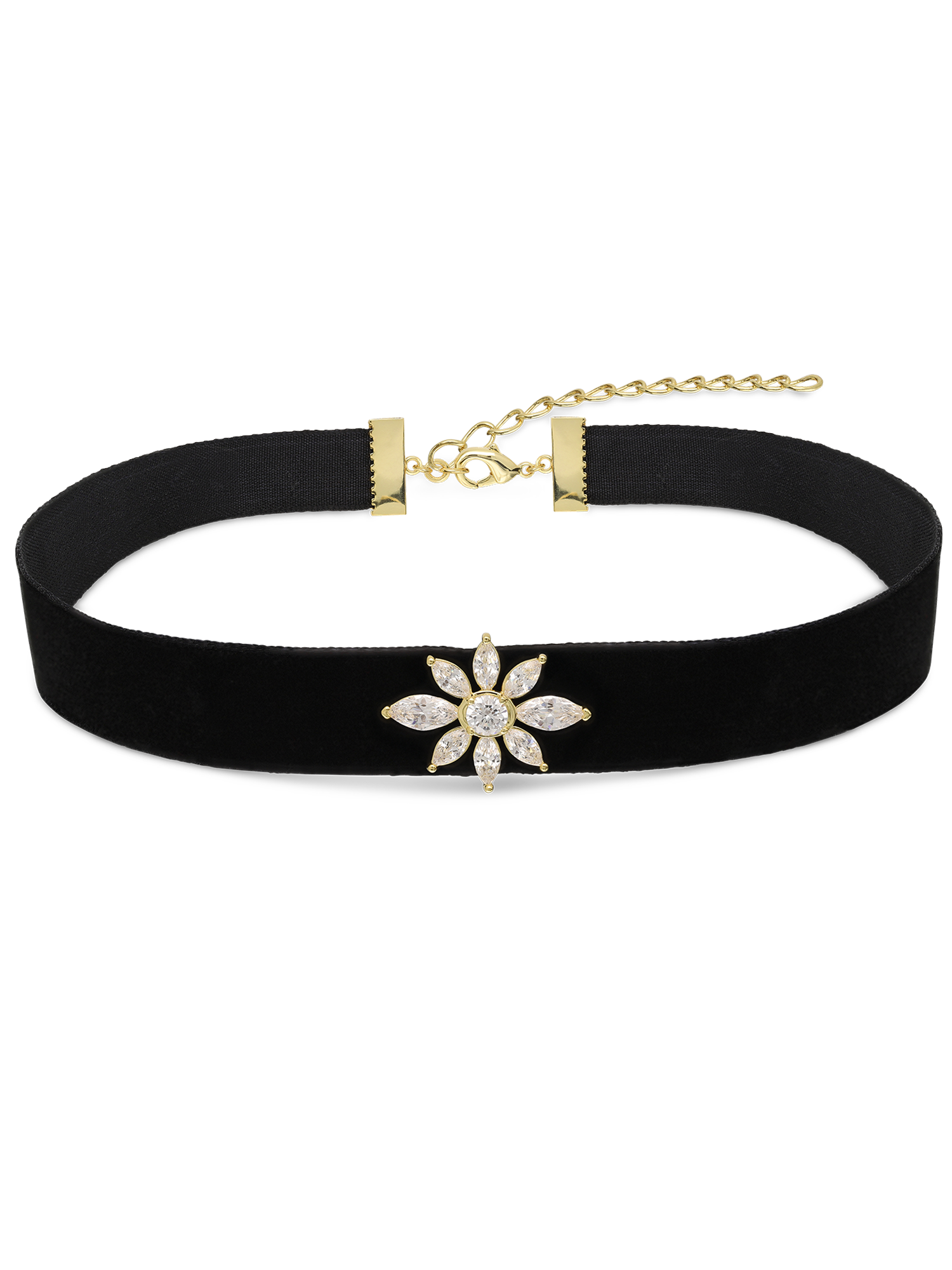 Collar gargantilla, Bañado en oro, Zirconia cúbica artificial, Claro, Flor, Artificial, Color dorado, 5.57 g