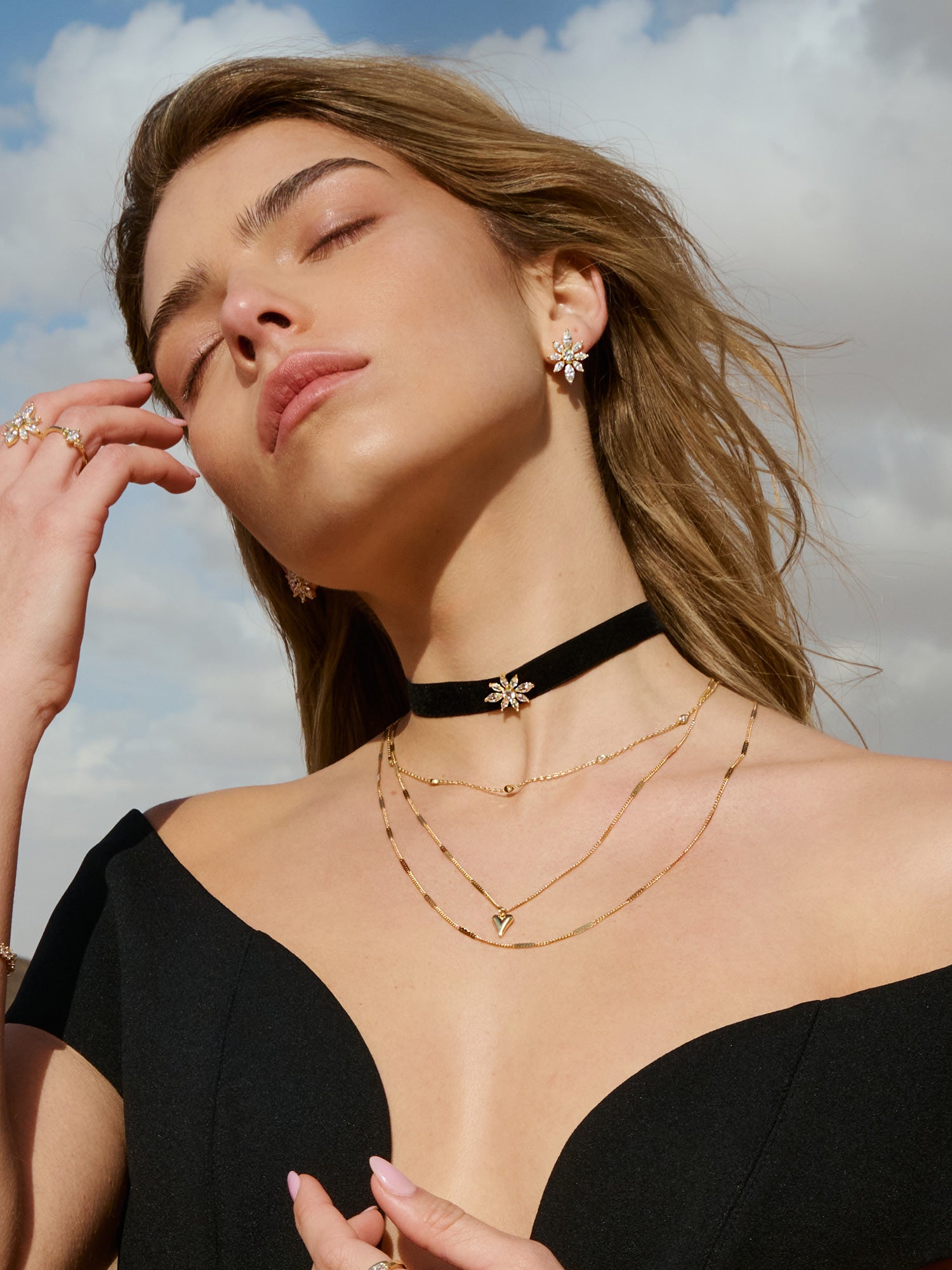 Collar gargantilla, Bañado en oro, Zirconia cúbica artificial