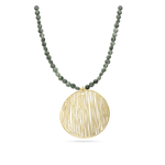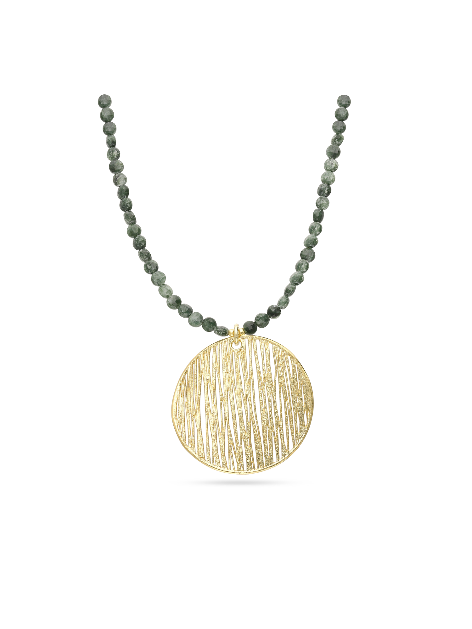 collar de piedra, Bañado en oro, Ágata artificial, Verde, Círculo, Artificial, Color dorado, longitud del colgante: 3.2 cm, ancho colgante: 3.2 cm, 10.30 g