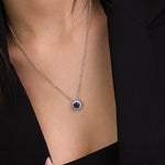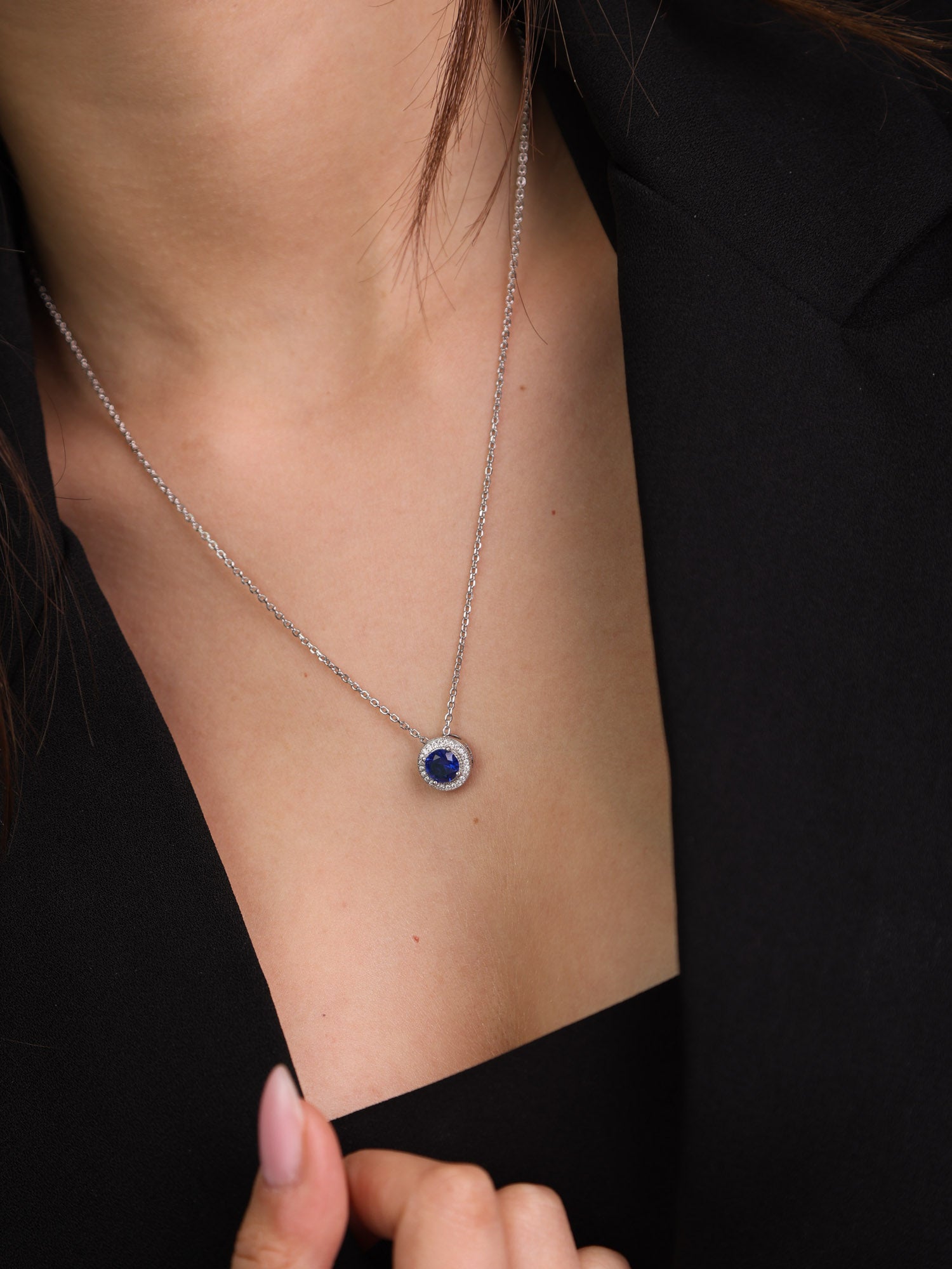 Collar colgante, Plata 925 bañada en rodio, Zirconia cúbica artificial, Azul, Claro, Círculo, Artificial, Color plateado, longitud del colgante: 1.0 cm, ancho colgante: 1.0 cm, 3.68 g