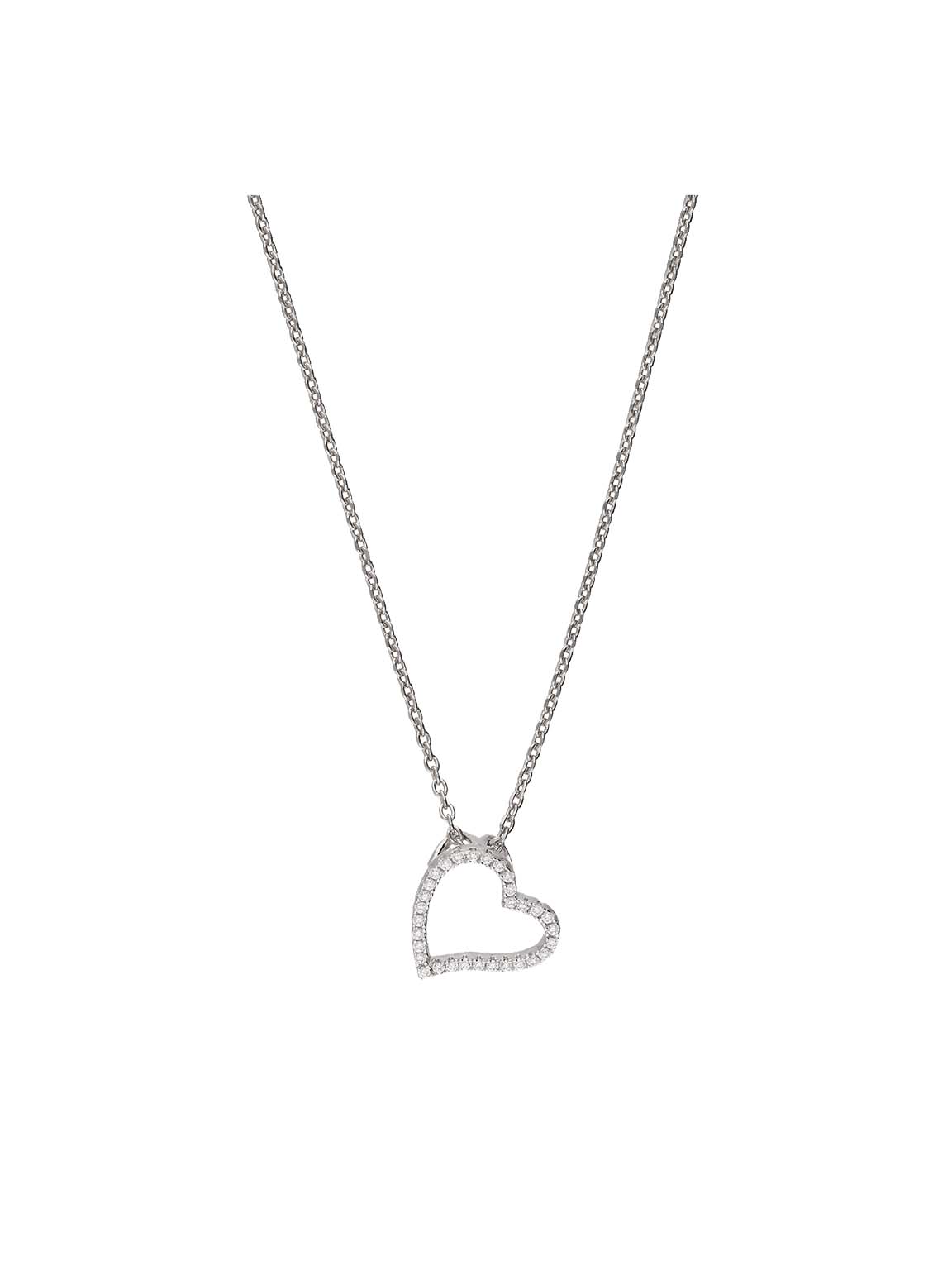 Collar colgante, Plata 925 bañada en rodio, Zirconia cúbica artificial, Claro, Corazón, Artificial, Color plateado, longitud del colgante: 1.2 cm, ancho colgante: 1.2 cm, 3.29 g