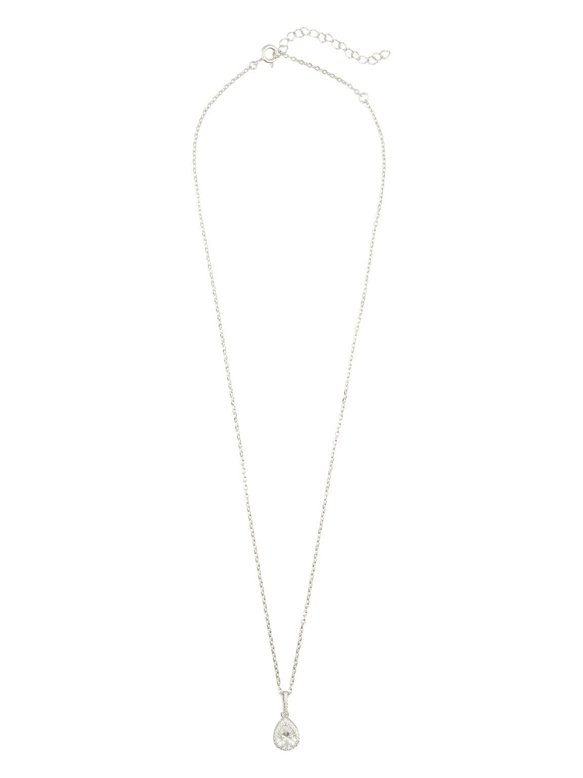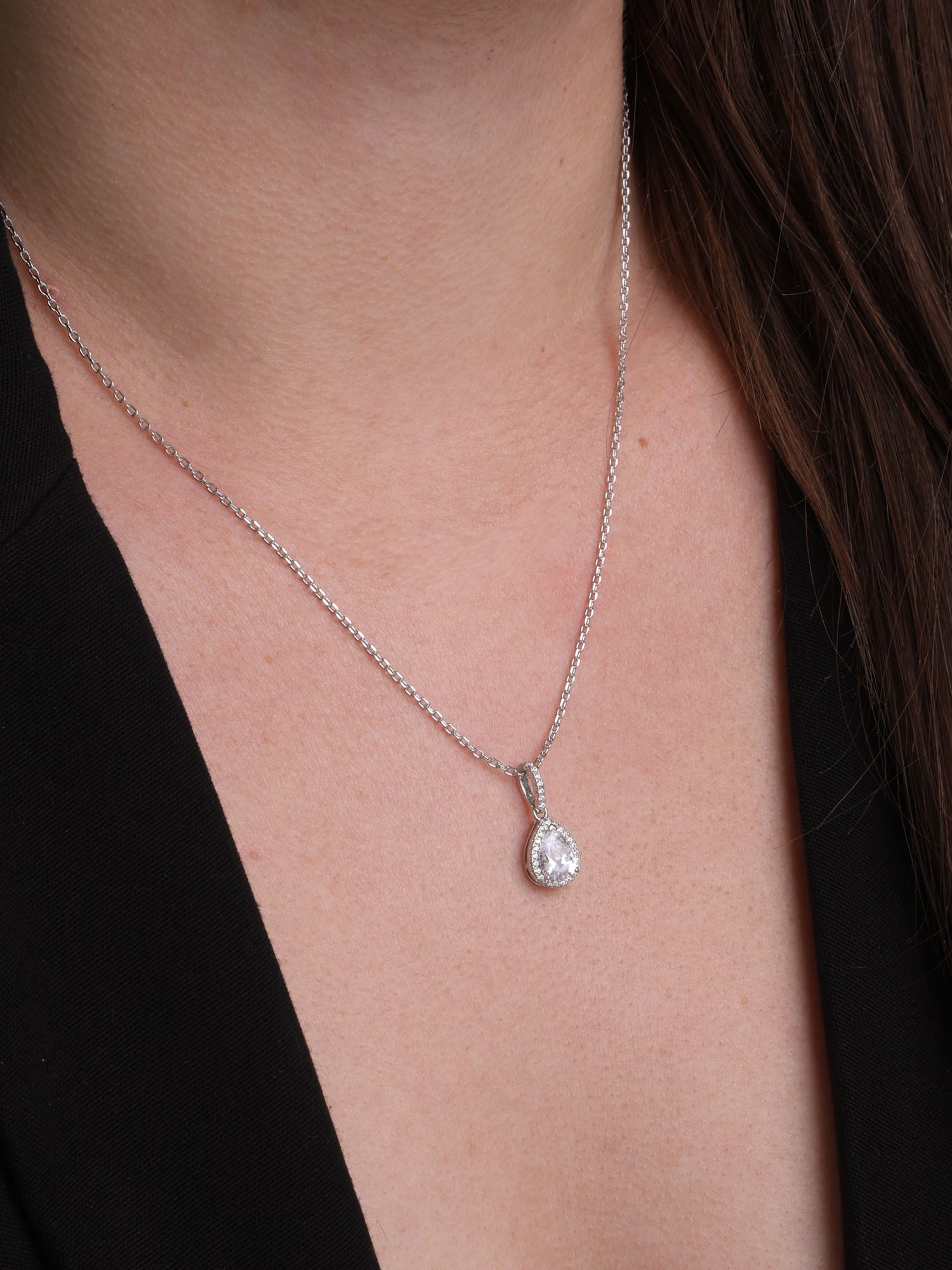 Collar colgante, Plata 925 bañada en rodio, Zirconia cúbica artificial, Claro, Lágrima, Artificial, Color plateado, longitud del colgante: 2.0 cm, ancho colgante: 0.8 cm, 3.93 g