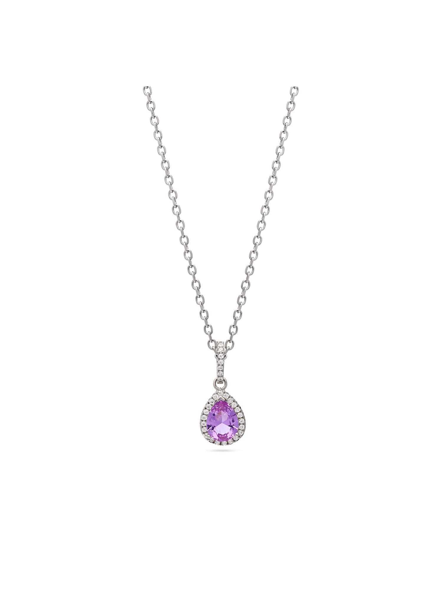 Collar colgante, Plata 925 bañada en rodio, Zirconia cúbica artificial, Violeta, Claro, Lágrima, Artificial, Color plateado, longitud del colgante: 1.9 cm, ancho colgante: 0.8 cm, 4.04 g