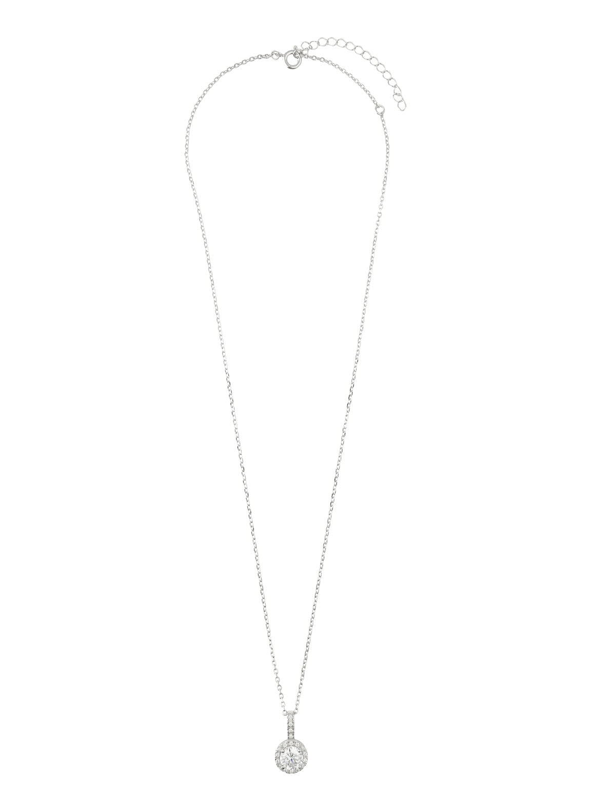 Collar colgante, Plata 925 bañada en rodio, Zirconia cúbica artificial, Claro, Círculo, Artificial, Color plateado, longitud del colgante: 2.0 cm, ancho colgante: 1.0 cm, 4.10 g